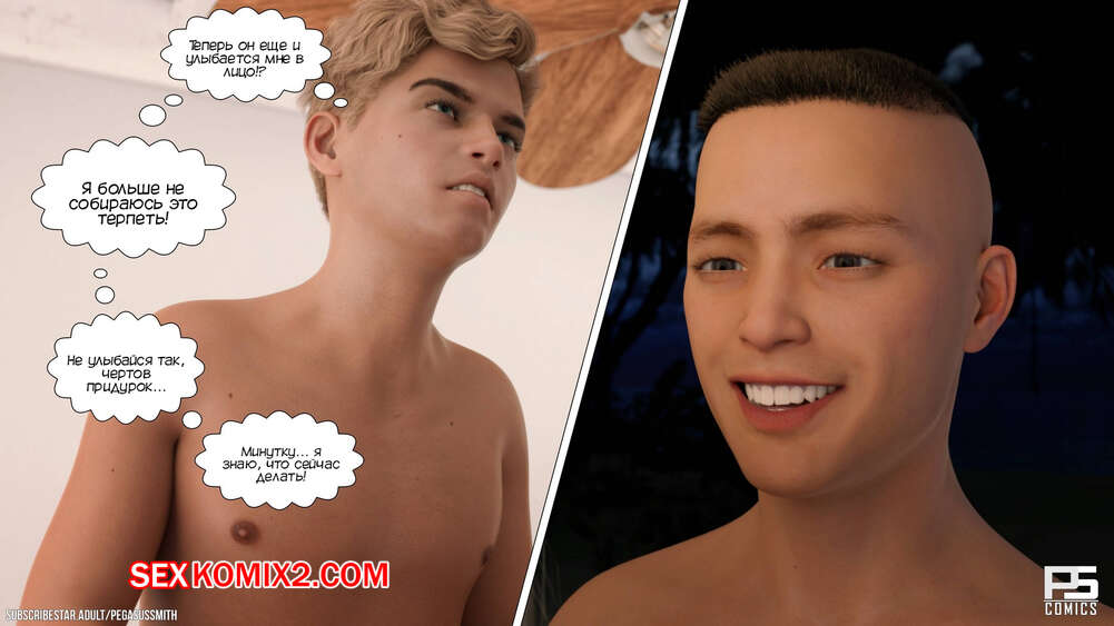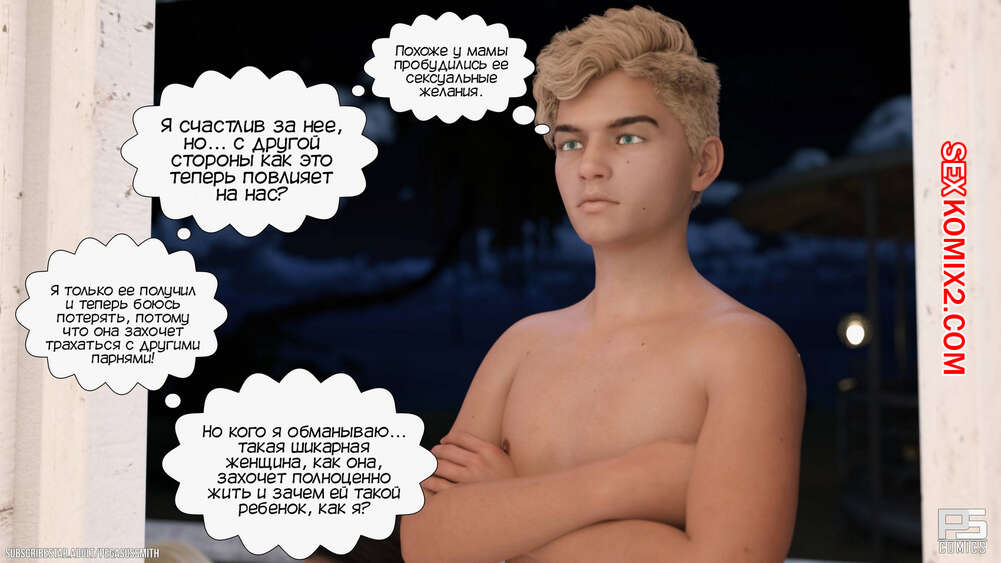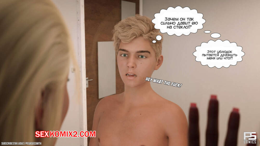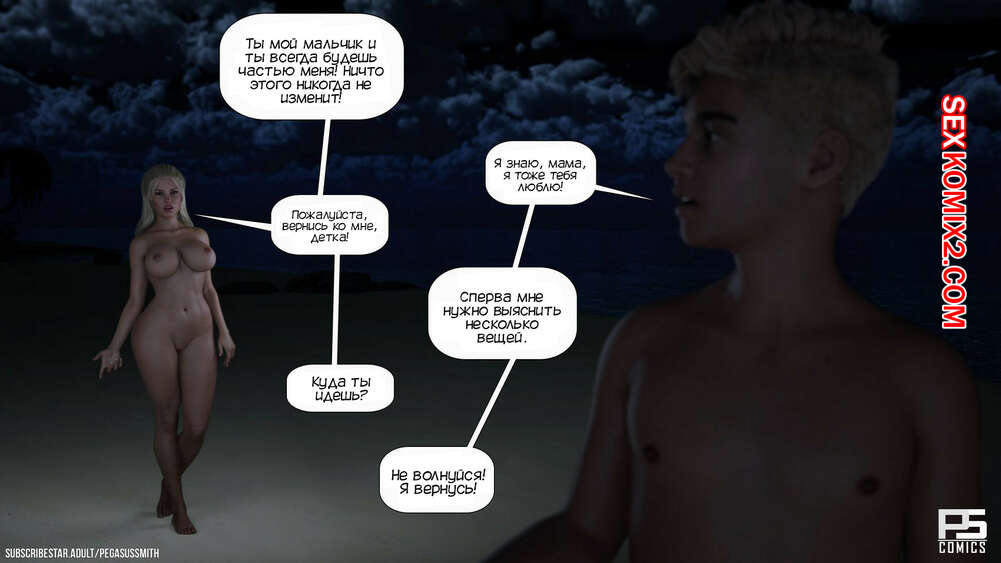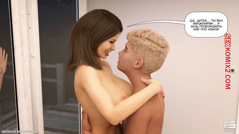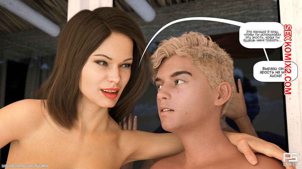 Порно комикс Нагишом. Нудистский курорт. Часть 10. Au Naturel. Pegasus Smith Сисястая блондинка милфа не могла ночью уснуть и услышала звуки секса. Она пошла посмотреть, что происходит, и обнаружила как сын со своим другом трахают его мамку.