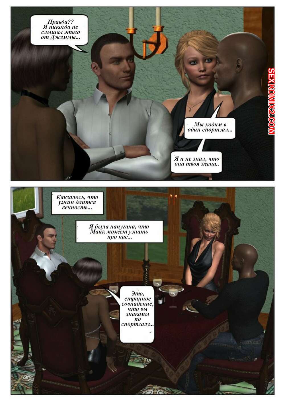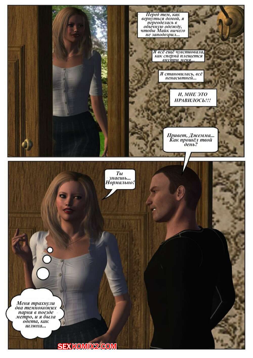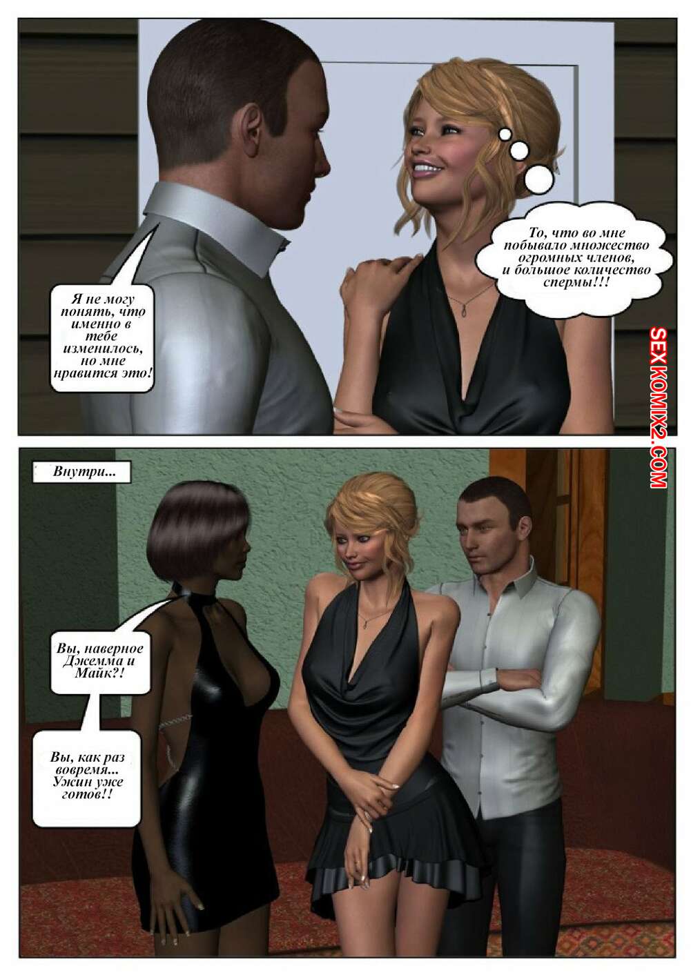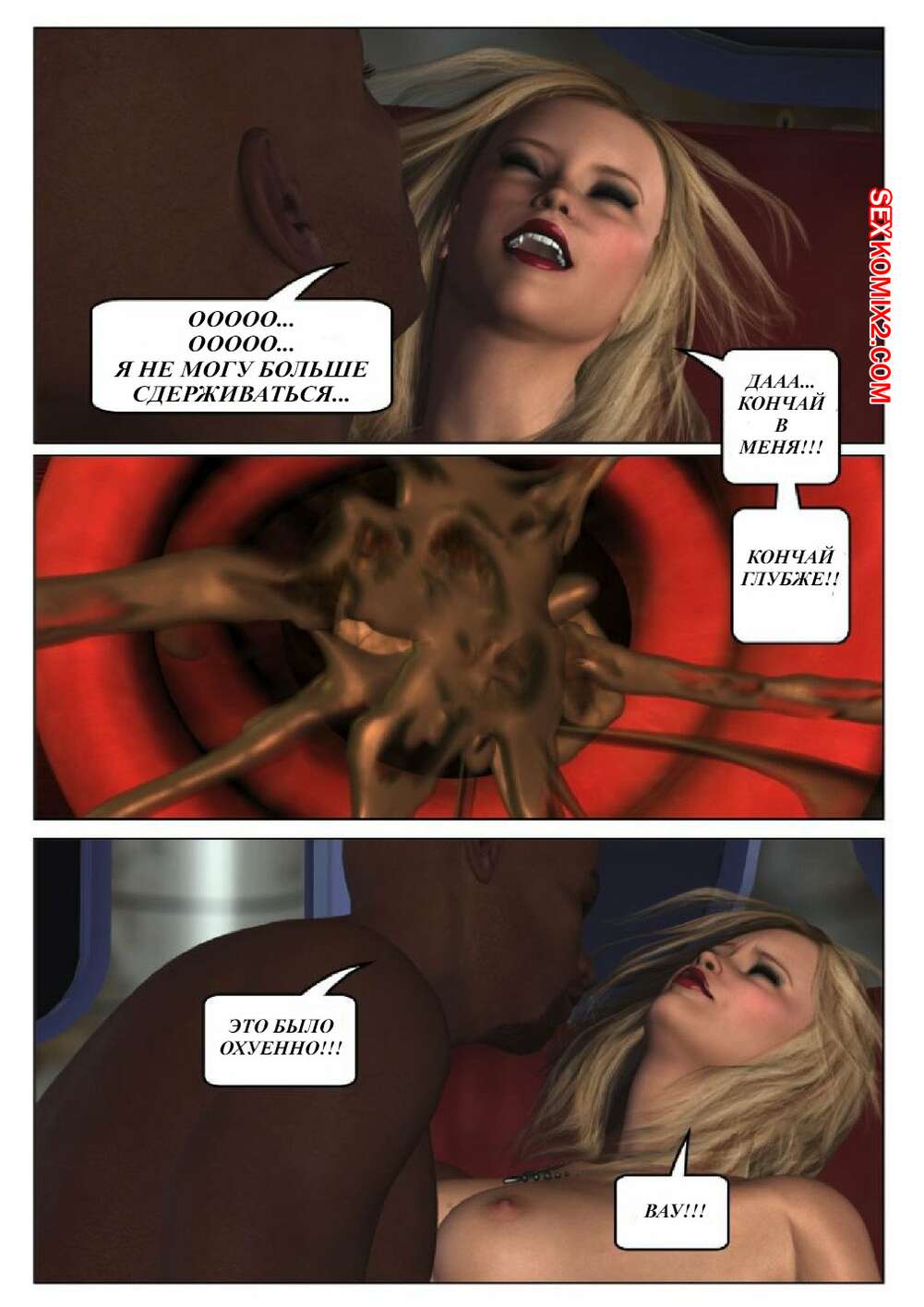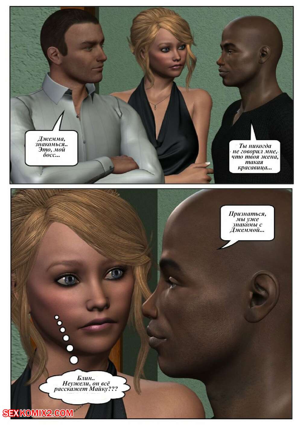 Порно комикс 50 оттенков чёрного. Часть 6 Горячая сисястая красотка блондинка встретилась в местро с двумя черными парнями. Они раздели ее и дали ей отсосать свои большие хуи, после чего они ее хорошенько выебали во все дырочки.