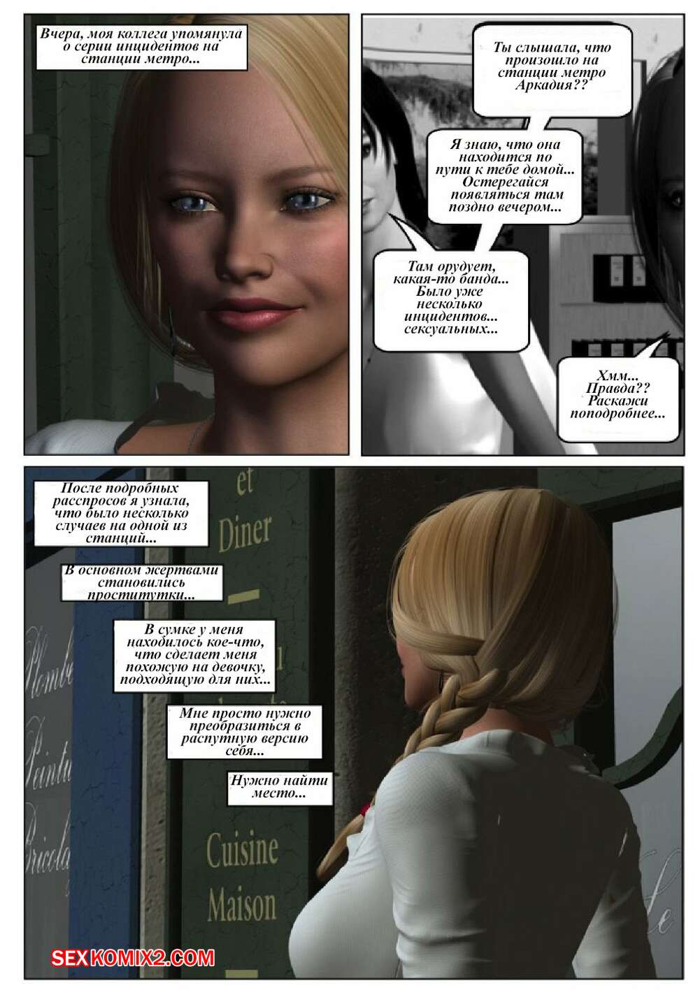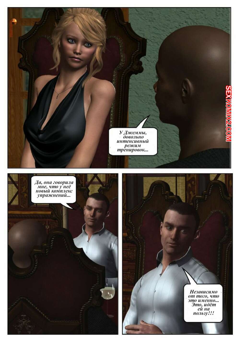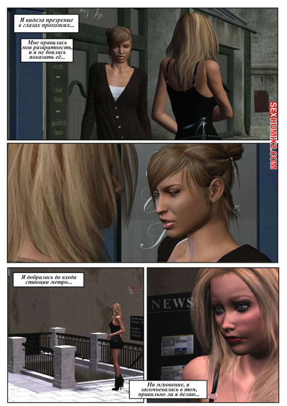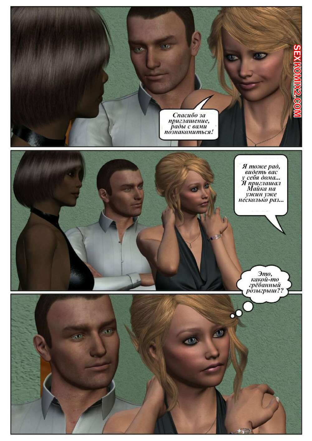 Порно комикс 50 оттенков чёрного. Часть 6 Горячая сисястая красотка блондинка встретилась в местро с двумя черными парнями. Они раздели ее и дали ей отсосать свои большие хуи, после чего они ее хорошенько выебали во все дырочки.