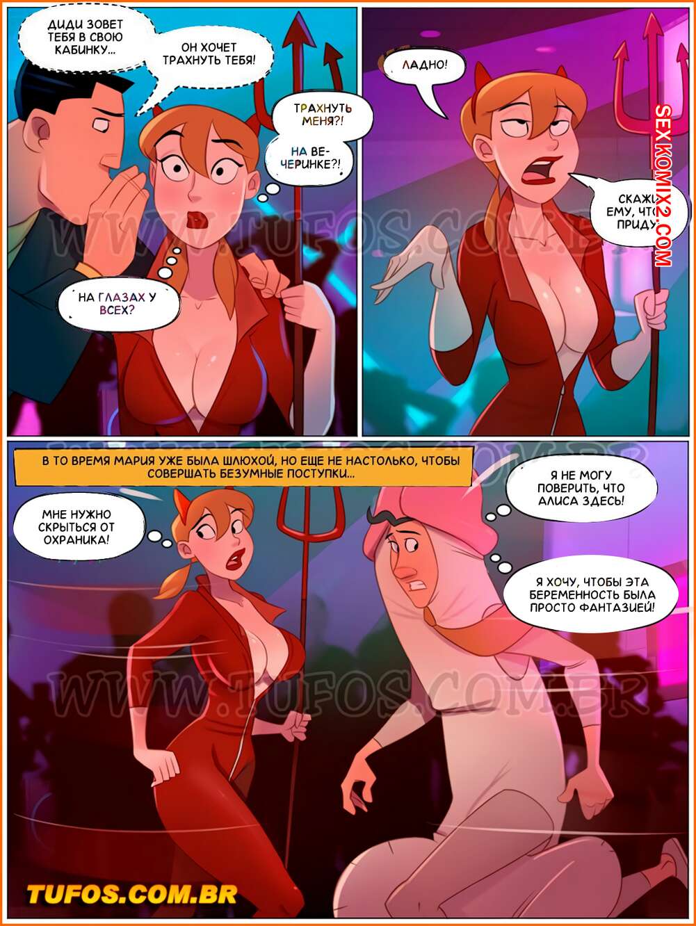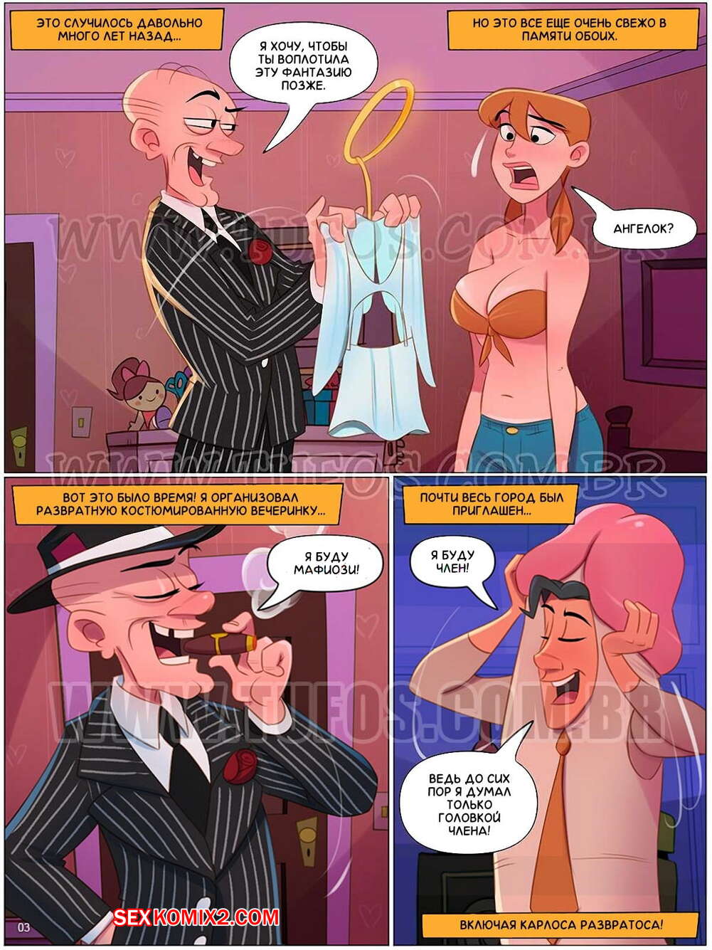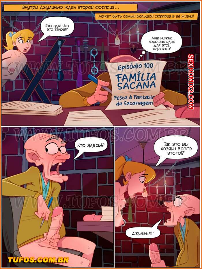 Порно комикс Похотливая семейка. Часть 100 Распутная костюмированная вечеринка. Tufos. Юбилейный выпуск комикса про знаменитую семейку из Бразилии, насчитывает 50 страниц. Всё семейство готовится к костюмированной вечеринке.
