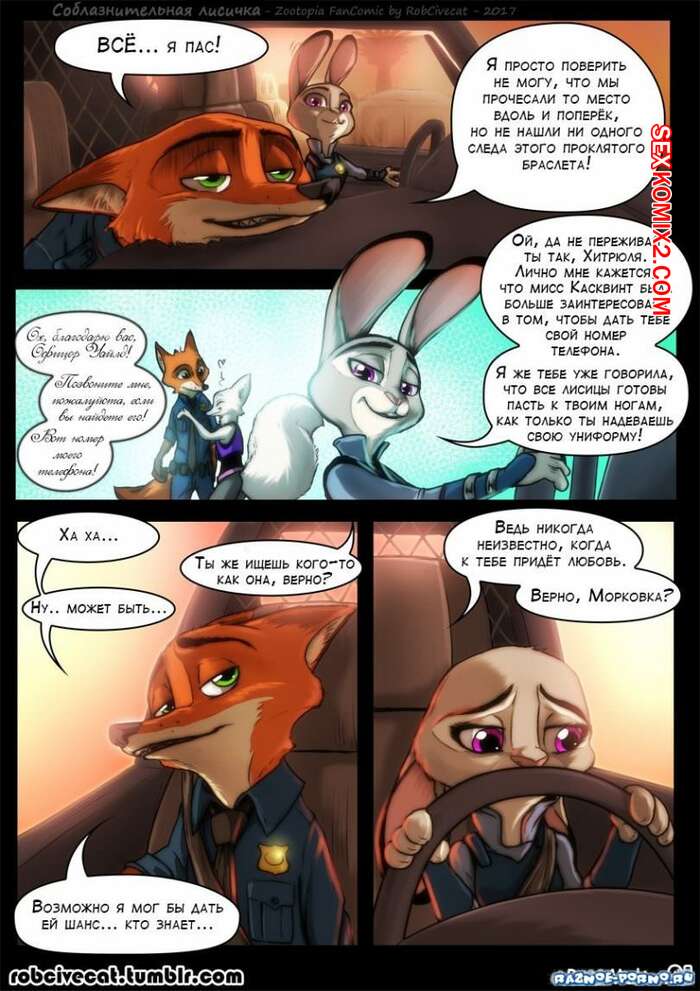 Порно комикс Зоотопия Горячая красотка крольчиха дождалась возвращения домой своего дружка. Она разделась перед ним, соблазняя его своим шикарным телом, после чего раздвинула ножки и дала ему себя хорошенько выебать.
