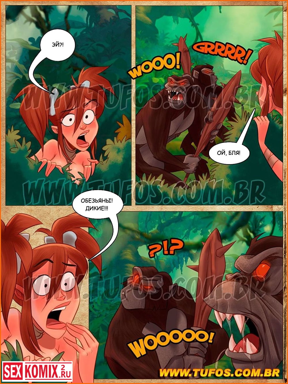 Порно комикс Семейка юрского периода. Часть 5. На волоске от смерти. Очередная часть полюбившегося порно секс комикса на русском о семейке юрского периода. На этот раз больше грудую Янку послали набрать воды из реки, которая находилась довольно далеко от дома. Девушка, наполнив, посуду уже собралась обратно, но тут на нее неожиданно нападают.