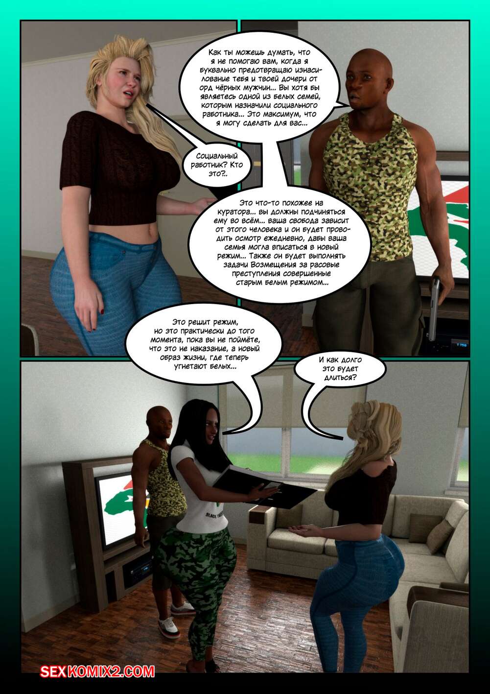 Порно комикс Чёрный переворот. Курорт НЧМП. Часть 1. Black Takeover. The BNWO Resort. Moiarte