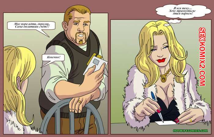 Порно комикс Женатый на шлюхе Сисястая блондинка милфа сидела с мужем в кафе и положила глаз на парня по соседству. Она написала ему свой адрес и пригласила его поебаться, пока ее мужа не будет дома.