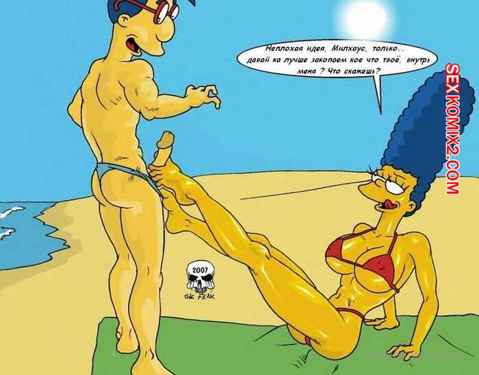 Порно комикс Симпсоны. Simpsons. На пляже. Мардж и друг Барта Горячая милфа Мардж загорала на пляже и на нее засмотрелся друг ее сына. Он решил выебать сучку и соблазнил ее своим большим хуем, так что милфа с радостью дала ему себя трахнуть.