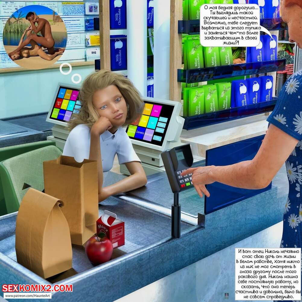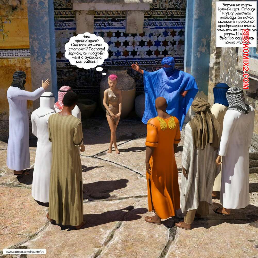 Порно комикс Николь в Марокко Молодая горячая красотка заскучала в магазине на работе и представила будто поехала в Марокко. Там ее шикарным телом стали пользоваться парни, которые хорошенько ее трахали и кончали в нее.