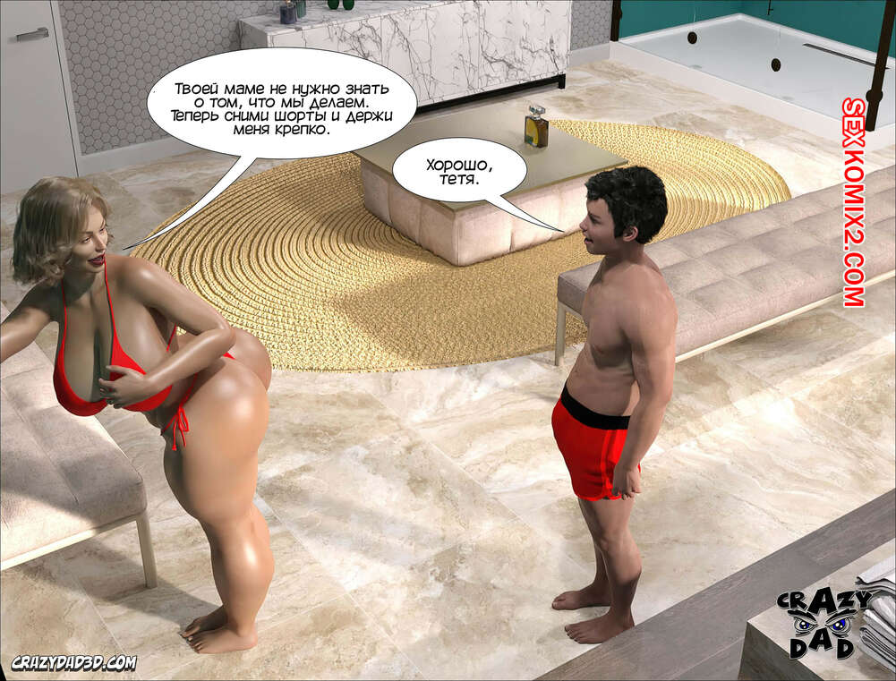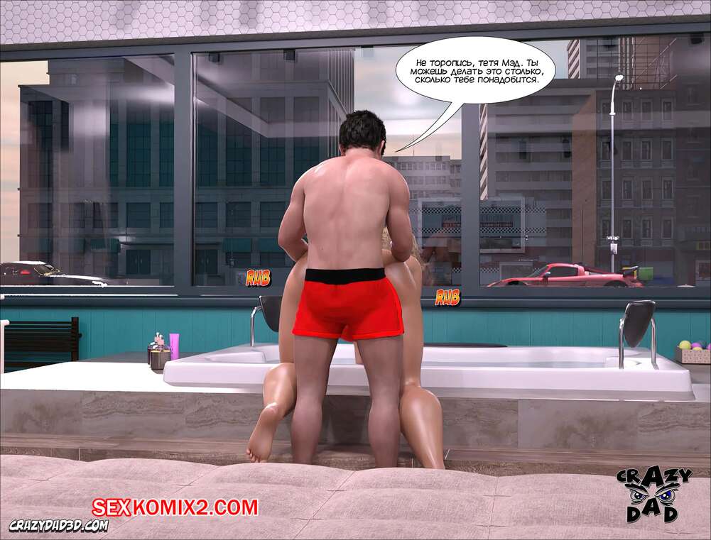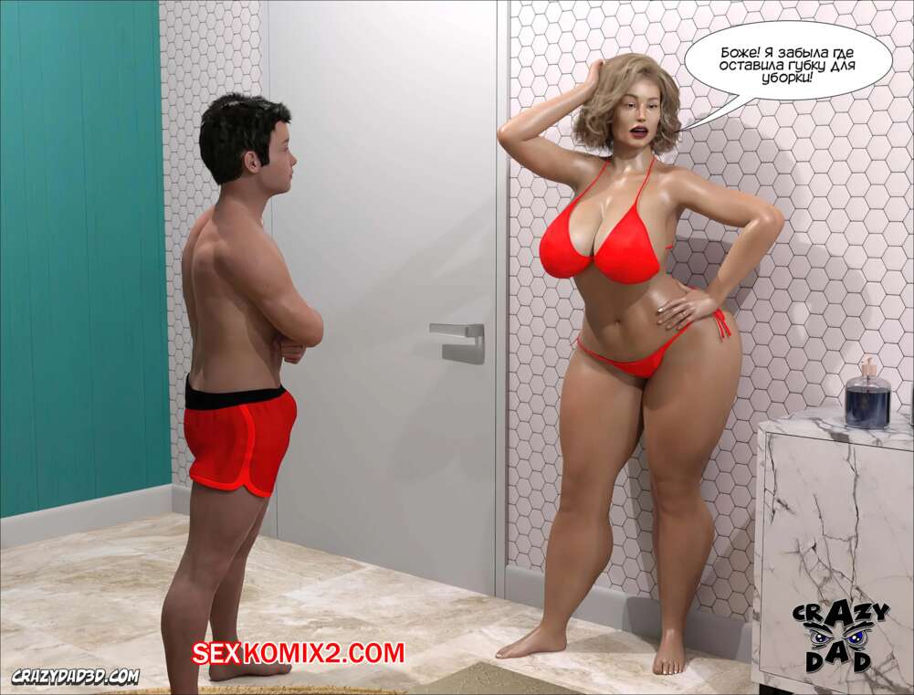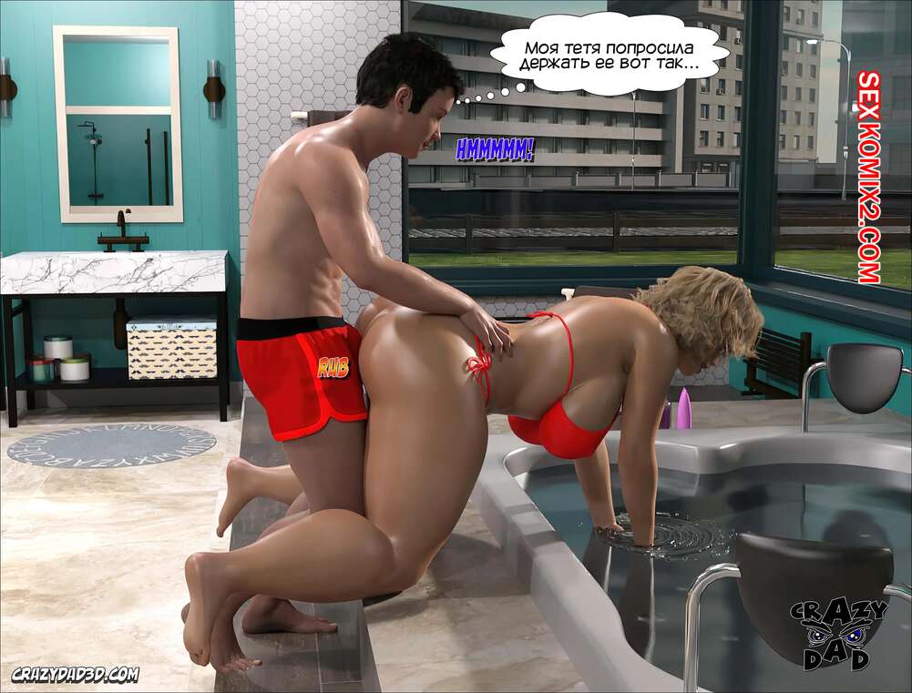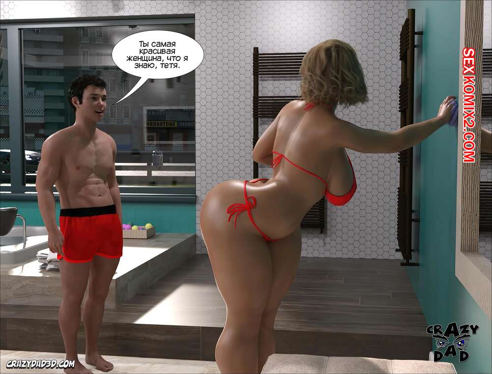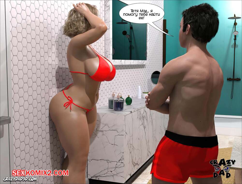 Порно комикс Мэдисон. Часть 14. Madison. CrazyDad3D Сисястая блондинка милфа надела сексуальный купальник и отправилась в ванну со своим племянником, чтобы убраться. Парень чертовски возбудился при виде шикарного тела тети, и она наконец позволила ему себя выебать.