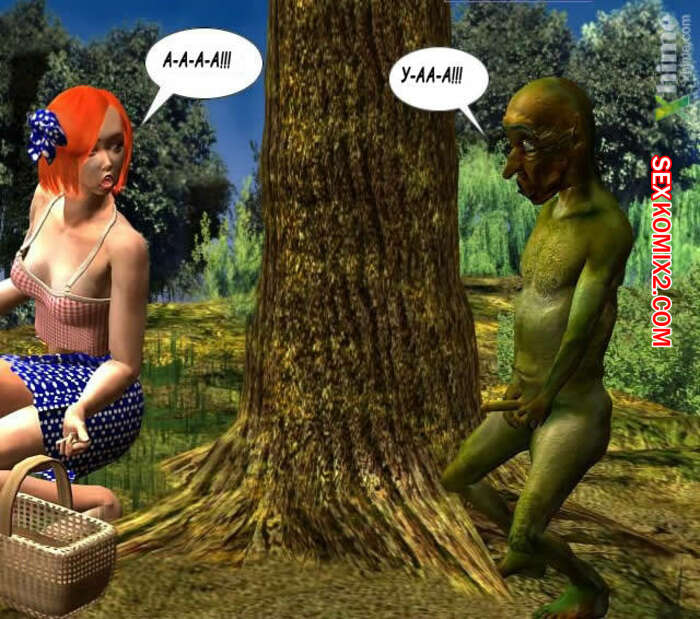 Порно комикс Секс с нечистой силой Горячая рыжая красотка гуляла по лесу и столкнулась там с монстром с маленьким хуем. С помощью магию он увеличил себе хуй и сучка стала у него отсасывать, после чего дала ему себя выебать в задницу.
