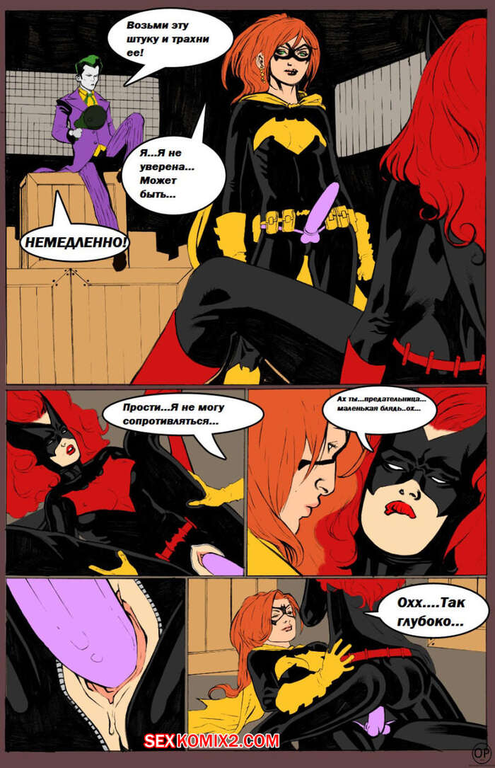 Порно комикс Развратные БэтВуман и БэтГерл. Joker VS Batwoman. Batman Джокер одолел на складе двух горячих красоток помощниц Бэтмена. Она раздел их и дал им отсосать свой большой хуй, после чего хорошенько их выебал и наполнил своей спермой.