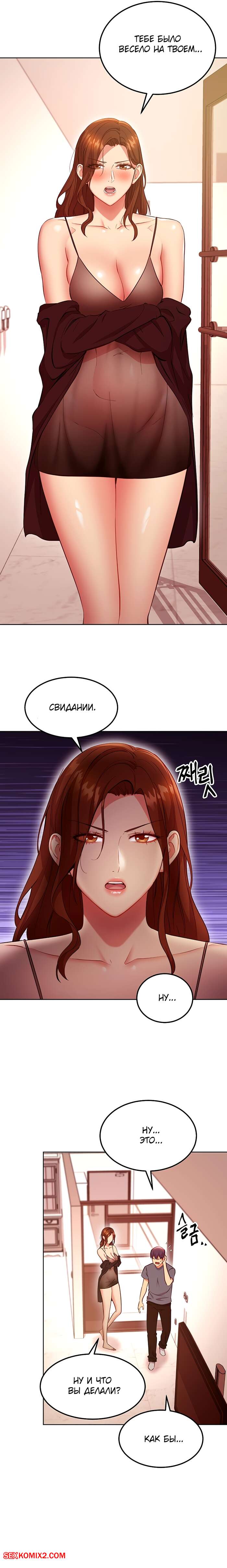 Порно комикс Мачеха и ее подруги. Часть 130. Stepmother Friends Сисястая милфа брюнетка была очень возбуждена и решила повеселиться с молодым парнем. Она разделась перед ним и стала сосать его большой хуй, после чего дала ему себя выебать.