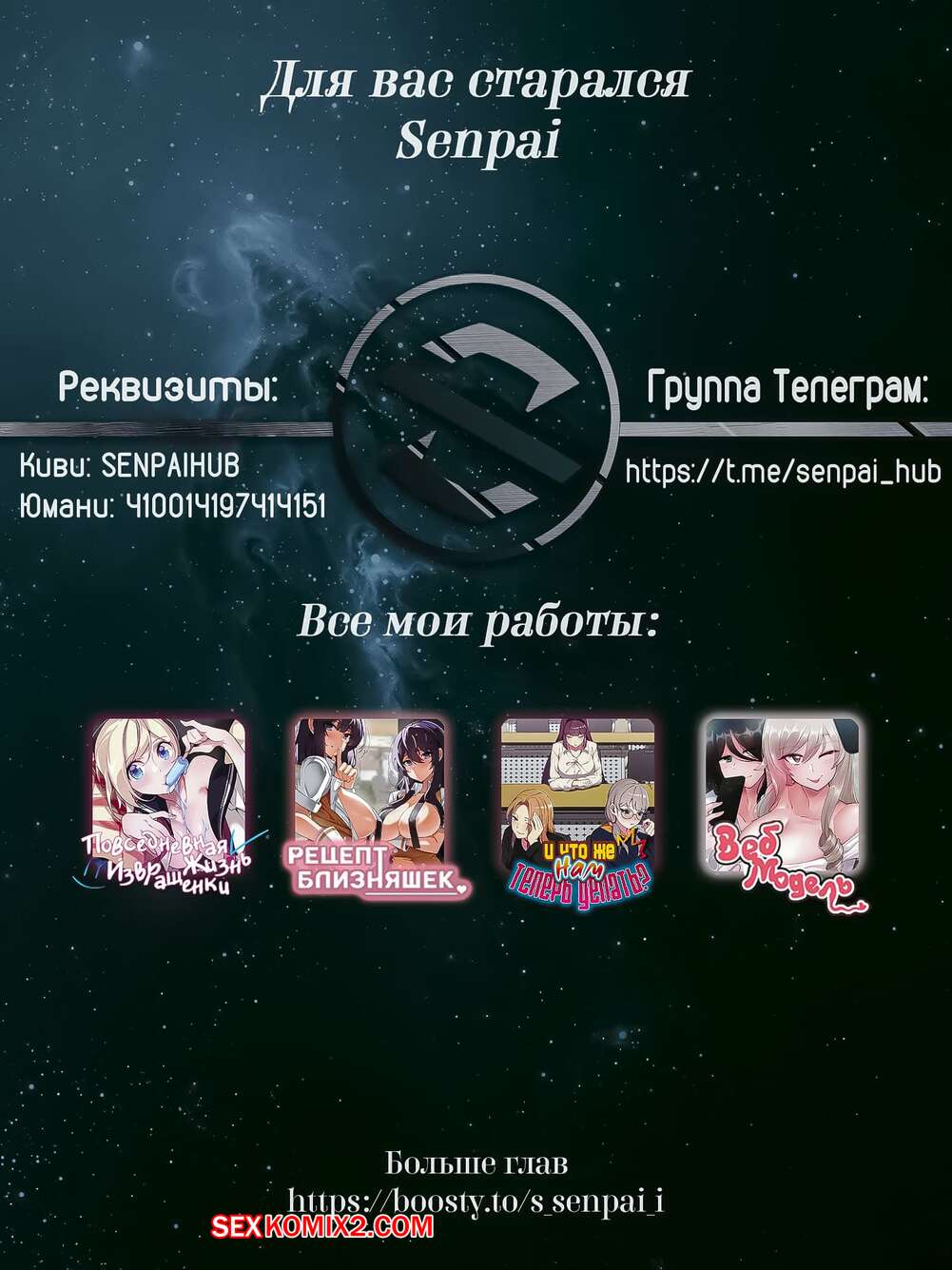 ???2022-08-31Такс, ну это опять какой-то перезалив на именно этот сайт, отвечаю. (Сейчас спойлер, закройте глазки, любители) Если очкастая не будет тем, кто рисует манхвы, то можете скидывать мне свой киви или же другую карточку, считайте сотка уже у вас. Ну а так в принципе ничего нового, мир настолько очистился что пошли перезаливы. Ждём новых глав.