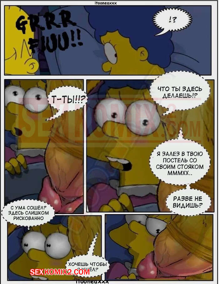 Порно комикс Симпсоны. Часть 8. Нарушитель. Simpsons. Intruder. IToonEAXXX Сисястая милфа Мардж спала ночью со своим мужем, но ее сон потревожил неизвестный парень с большим стояком. Он дал сучке отсосать у себя, после чего хорошенько ее выебал.