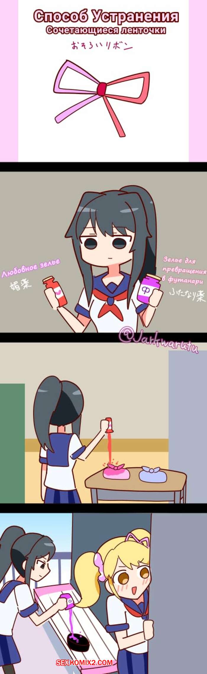 Порно комикс Способы устранения соперниц. Часть 1 и 2 и 3. Yandere Simulator by Jarkwarutu Подборка артов и картинок с горячими сисястыми красотками. Они любят трахаться, поэтому часто уединяются друг с дружкой, чтобы хорошенько поебаться и получить удовольствие.