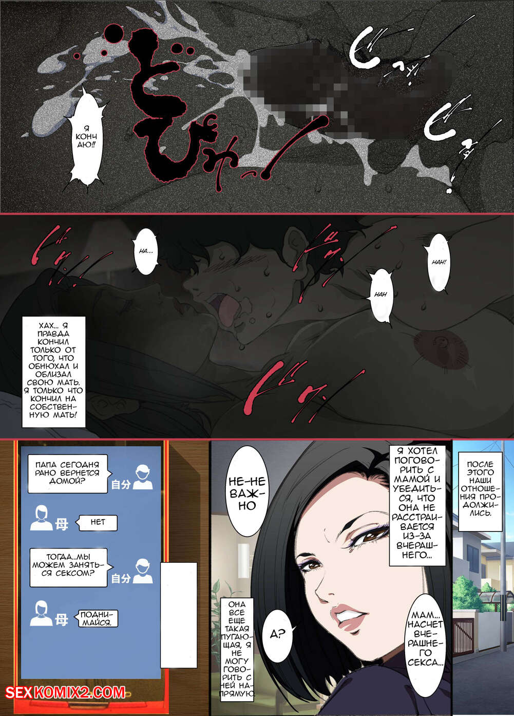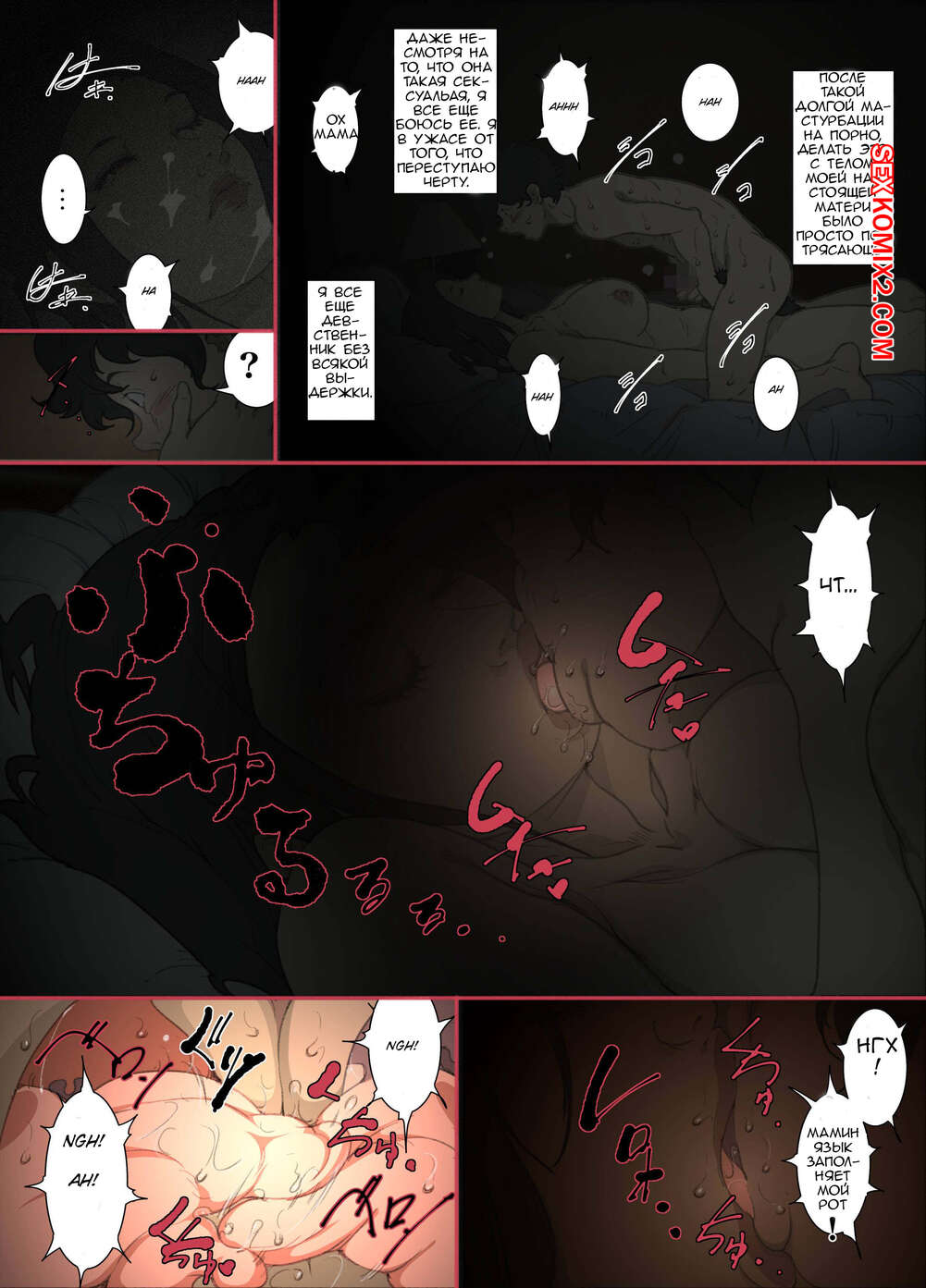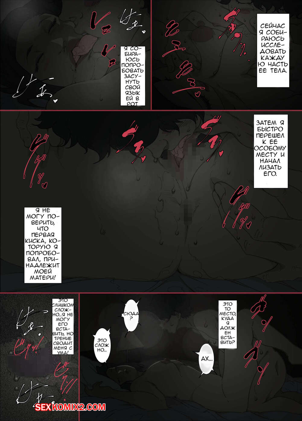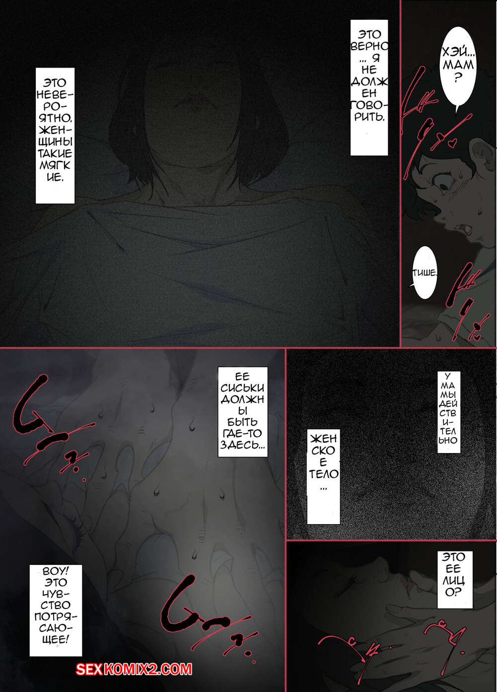 Порно комикс Ночью. Пока мама спит. Мать которая соглашается стать сексуальным партнером сына Молодой парень хотел ночью трахаться, поэтому он отправился в комнату к мамке. Парень стал ласкать ее большие сиськи, после чего хорошенько ее выебал и доставил ей удовольствие.