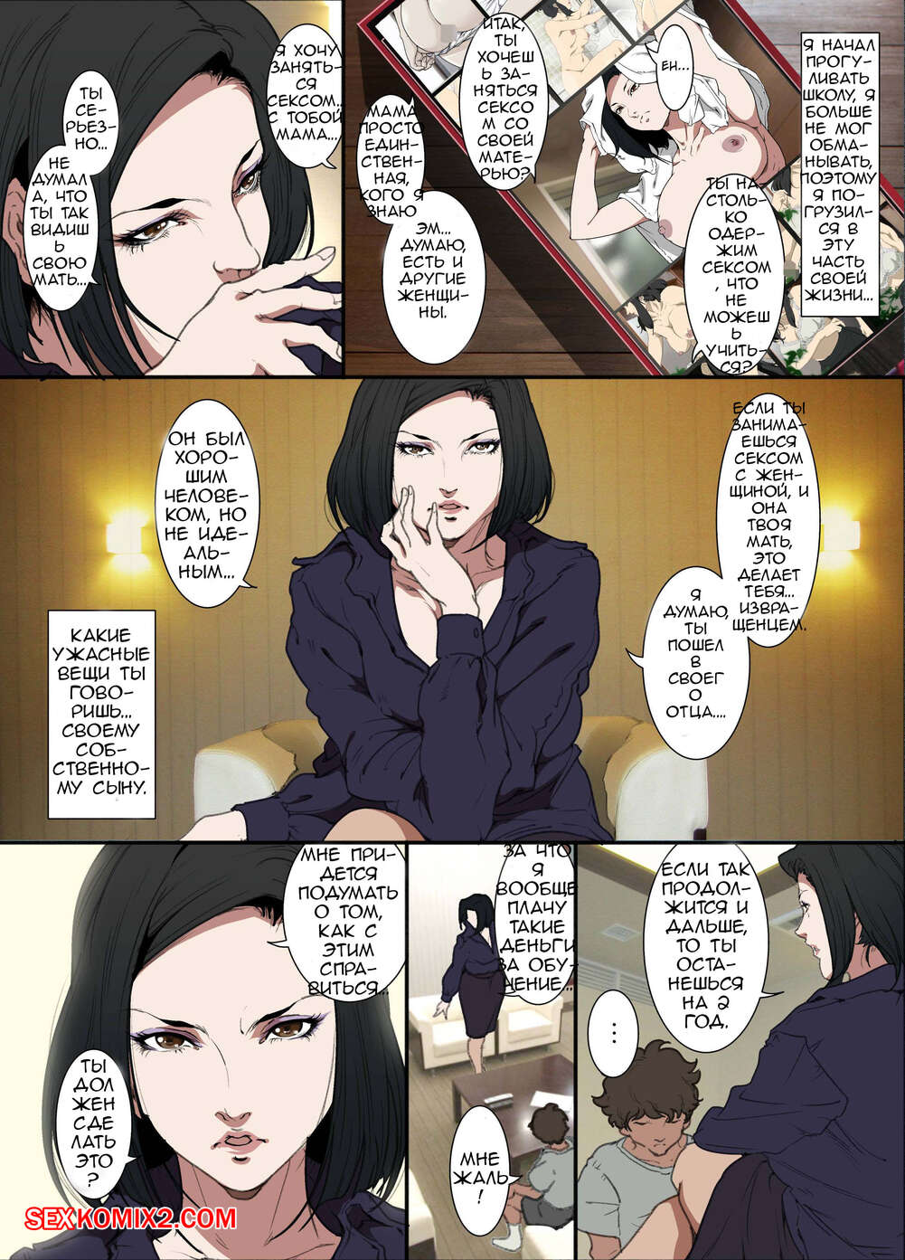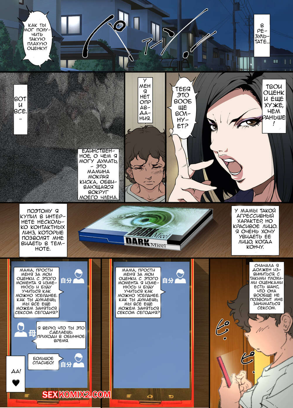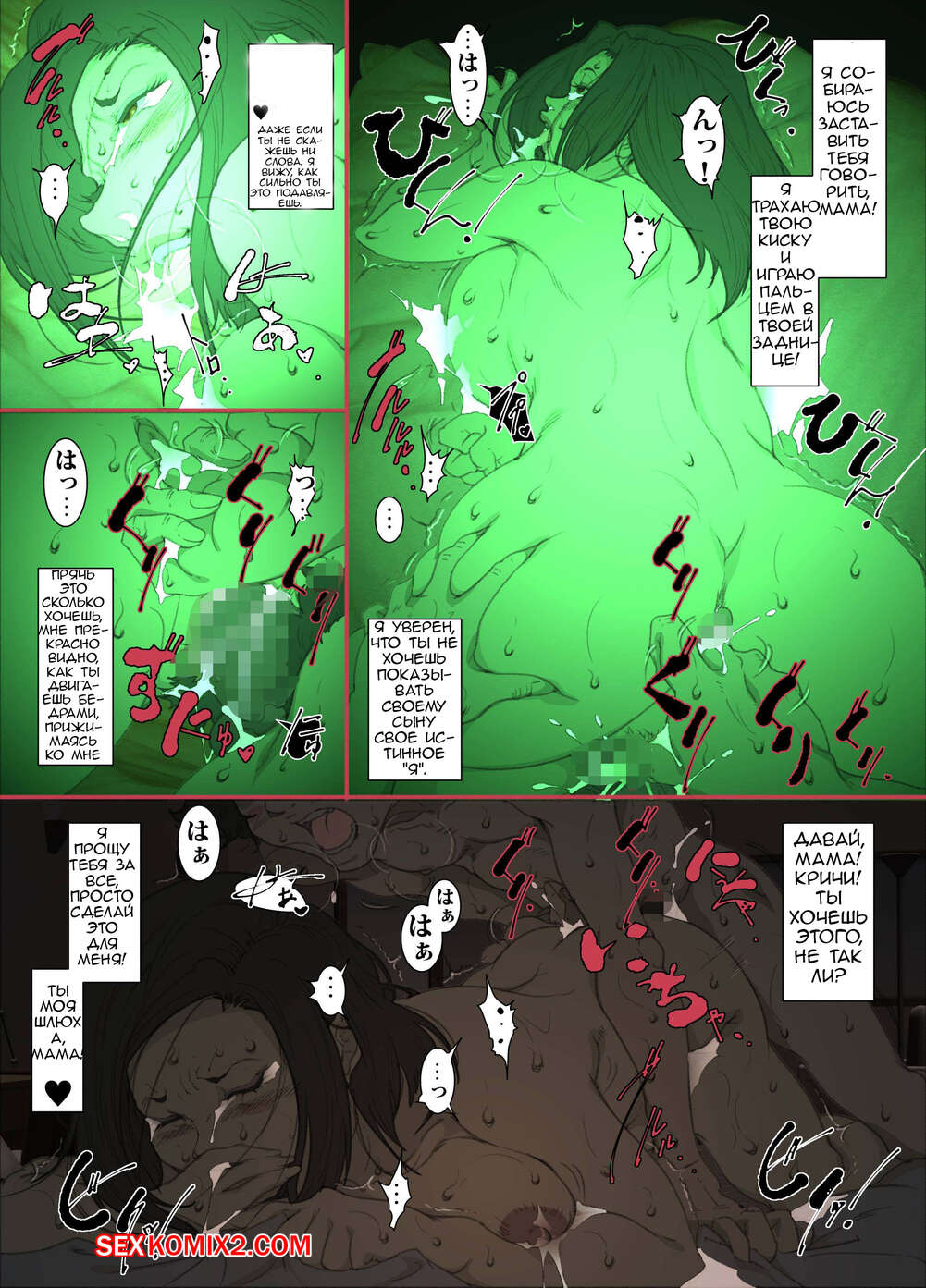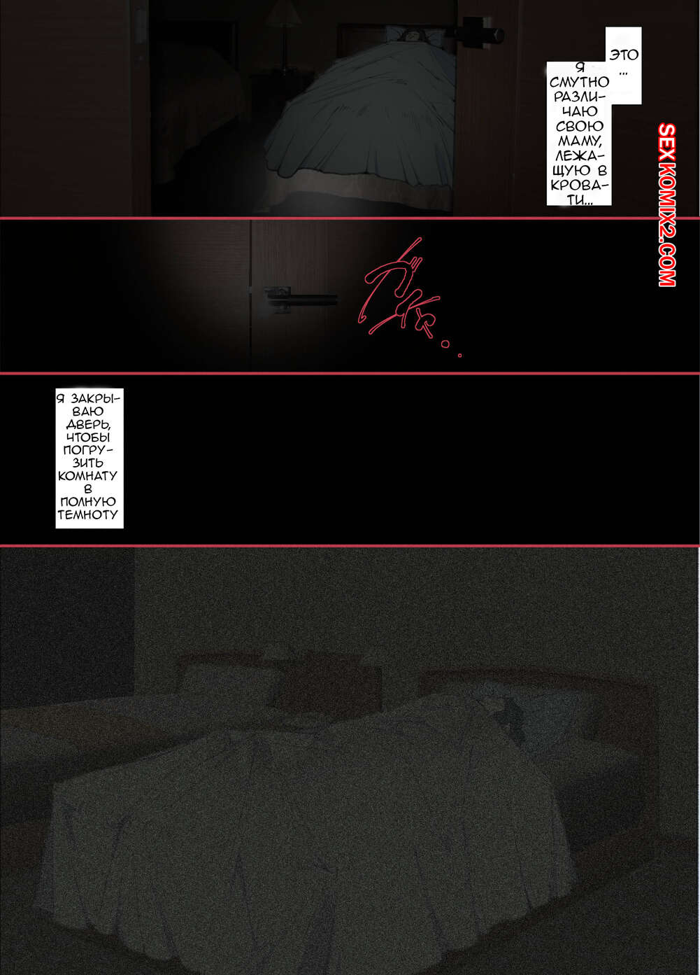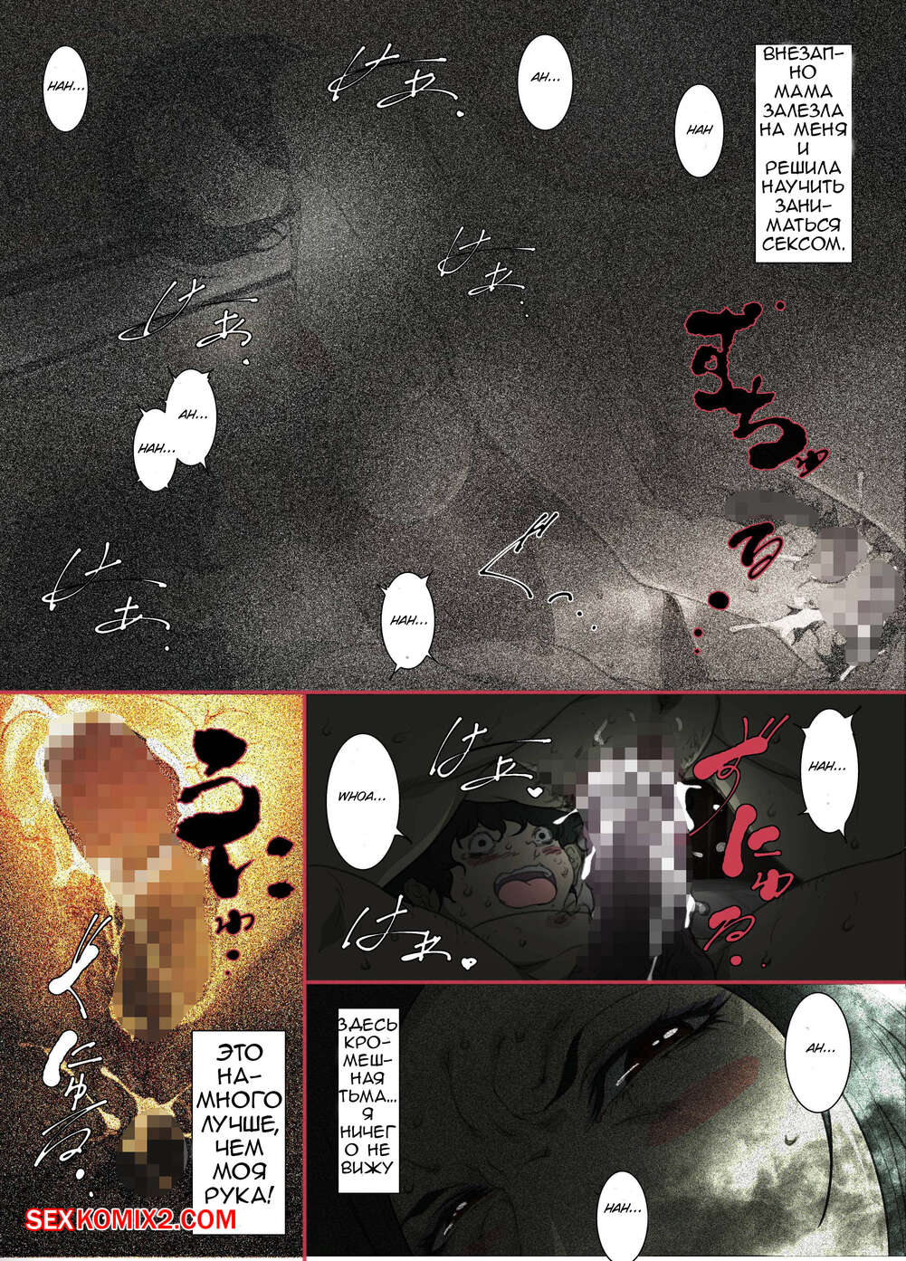 Порно комикс Ночью. Пока мама спит. Мать которая соглашается стать сексуальным партнером сына Молодой парень хотел ночью трахаться, поэтому он отправился в комнату к мамке. Парень стал ласкать ее большие сиськи, после чего хорошенько ее выебал и доставил ей удовольствие.