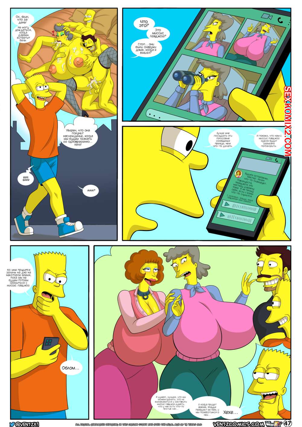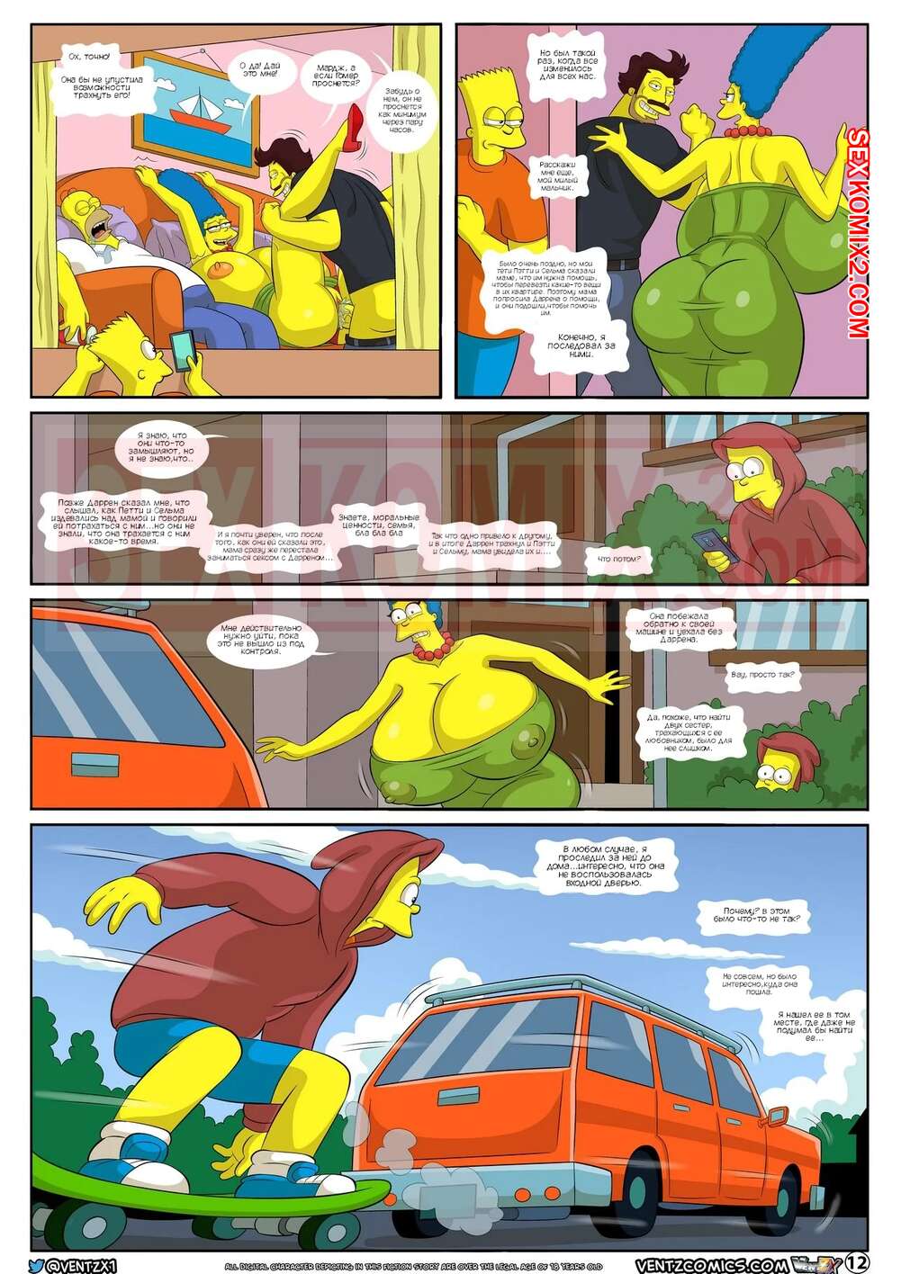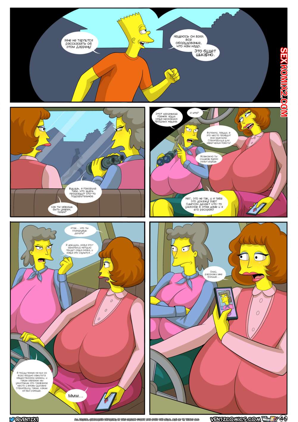 Порно комикс Приключения Даррена. Часть 13. Симпсоны. Darrens Adventure. The Simpsons. Arabatos После ебли с сисястой милфой Барт посетил душ и решил отправиться домой, но его остановила хозяйка мотеля, которая хотела узнать историю бизнеса, который сейчас ведет молодой парень.