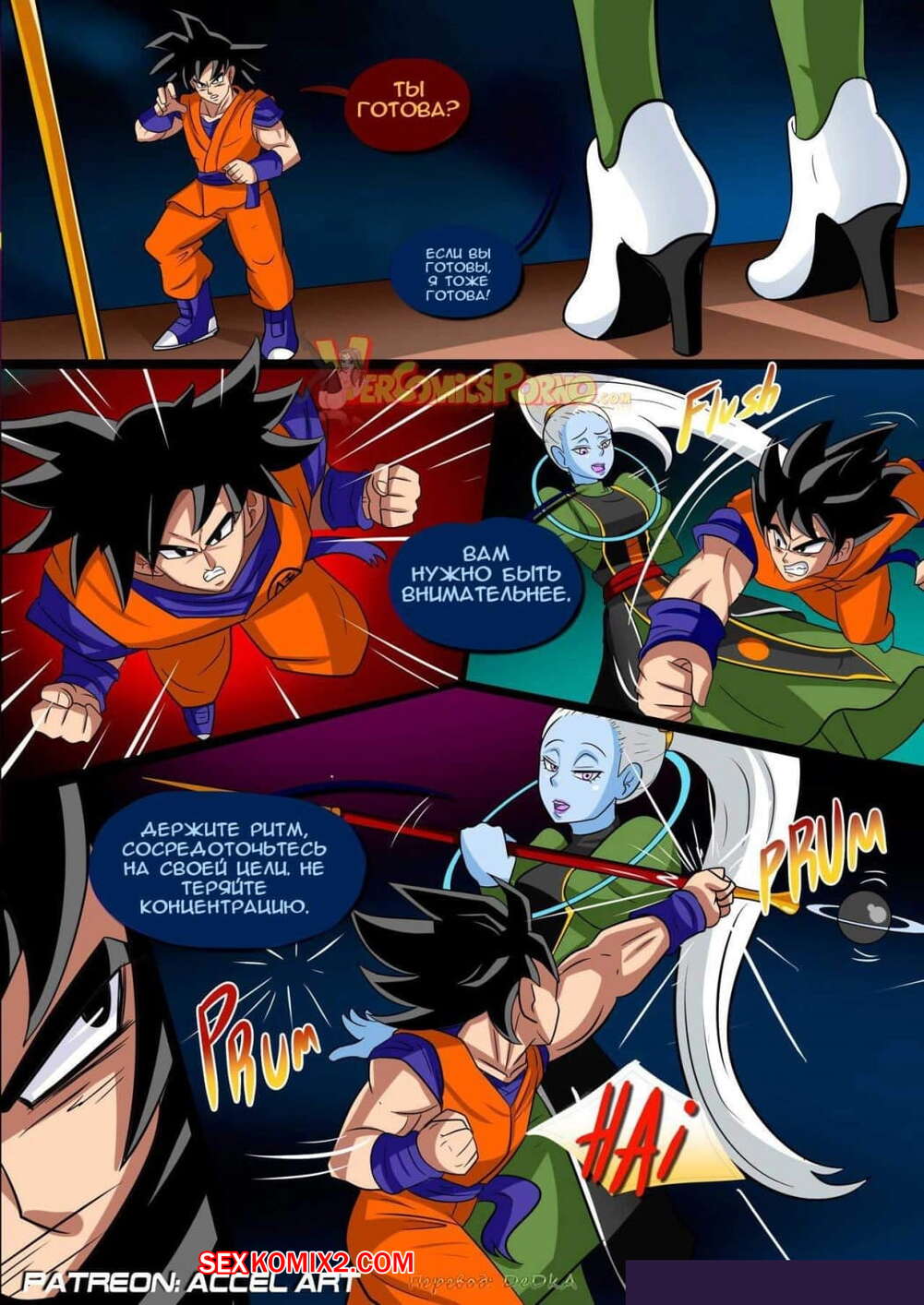Порно комикс Dragon Ball. Специальная тренировка. Special Training. Accel Art Горячая сисястая блондинка решила устроить особую тренировку со своим дружком. Она разделась перед ним и стала сосать его большой хуй, после чего дала ему себя хорошенько выебать.