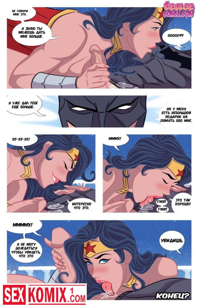 Порно комикс Мне нужен Бэтмен. Чудо женщина после долгих битв против зла отдыхает и мечтает о мире во всем мире. Они пытается расслабиться и начинает мастурбировать. Женщина представляет единственного мужчину которого она любит и может доверять только ему. Это Бетмен, он является в её фантазии и они занимаются страстным сексом.