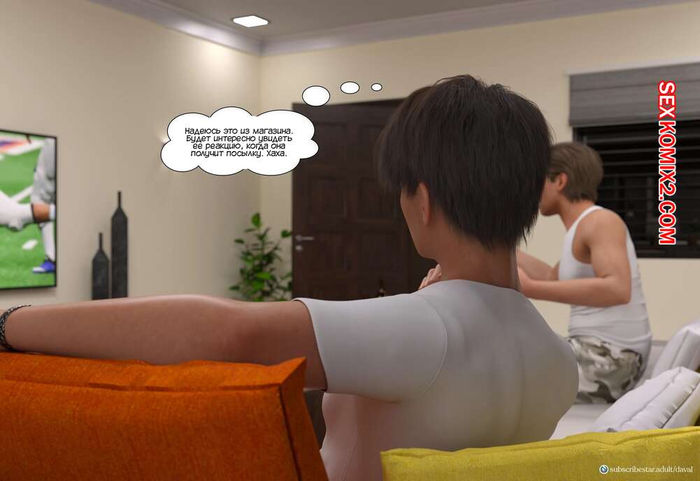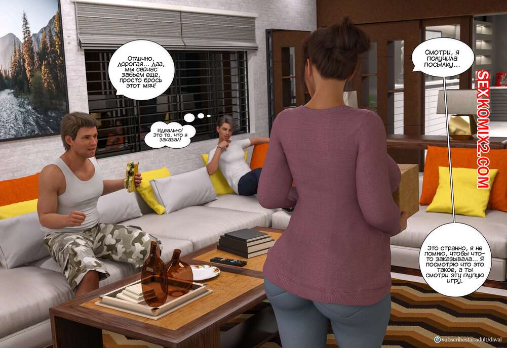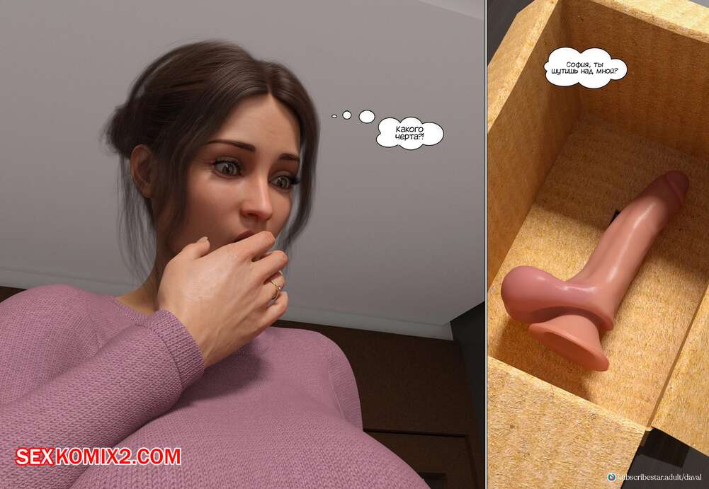 Порно комикс Непристойные желания мамаш. Часть 2. Immoral desires. Daval3D Сисястая милфа брюнетка получила ночью посылку с подписью от ее подруги, которую на самом деле заказал ей ее сын. Открыв коробку, дама увидела там большой дилдо, от чего была в большом шоке.