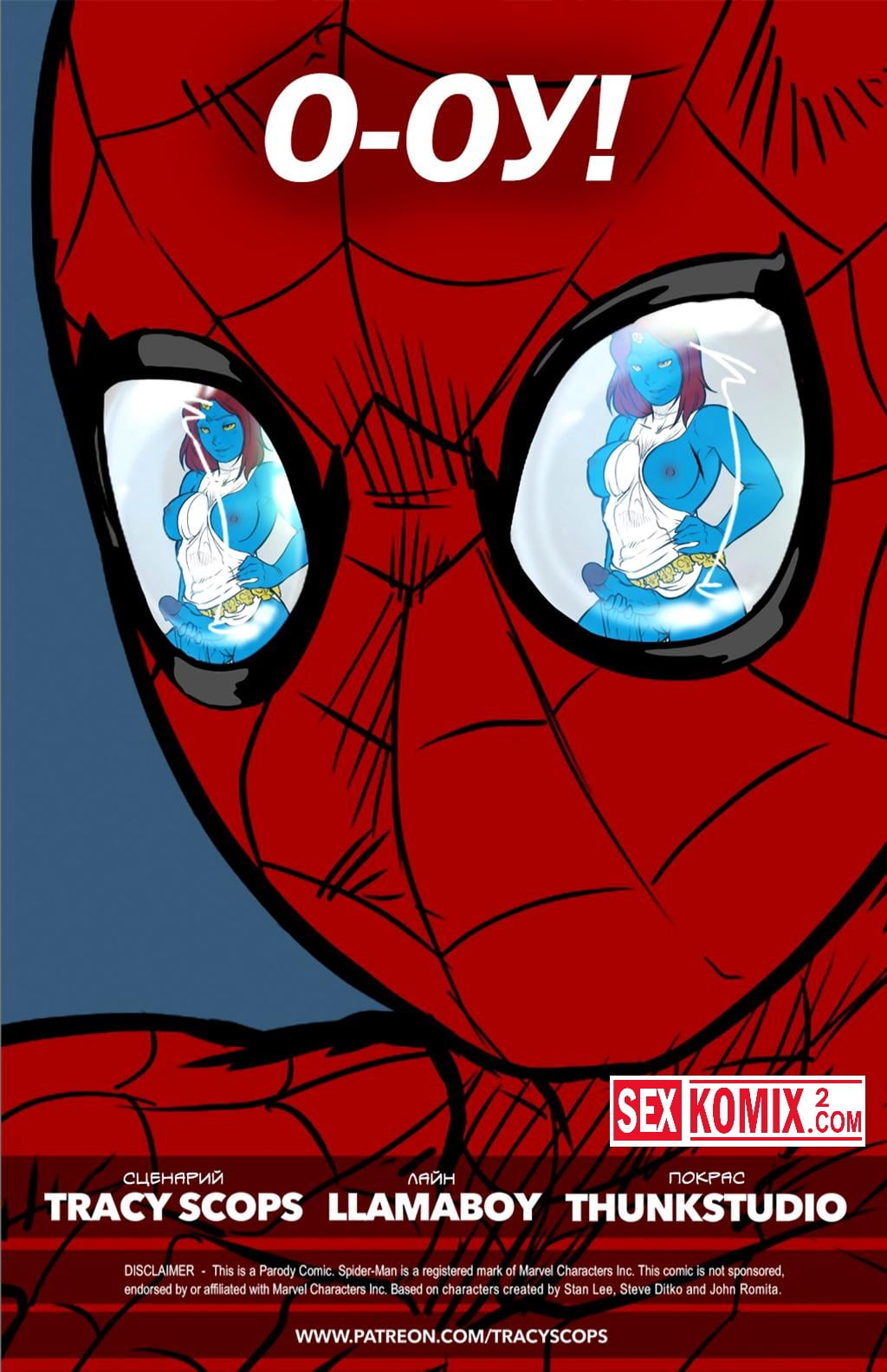 Порно комикс Мистик. Питер Паркер решил развлечься с Мистик, он слышал, что она может перевоплотиться в любую красотку. Но у девушки специфический характер и сегодня она решила попробовать что-то новое и отрастила член. Паучье чутье его в этот раз подвело.