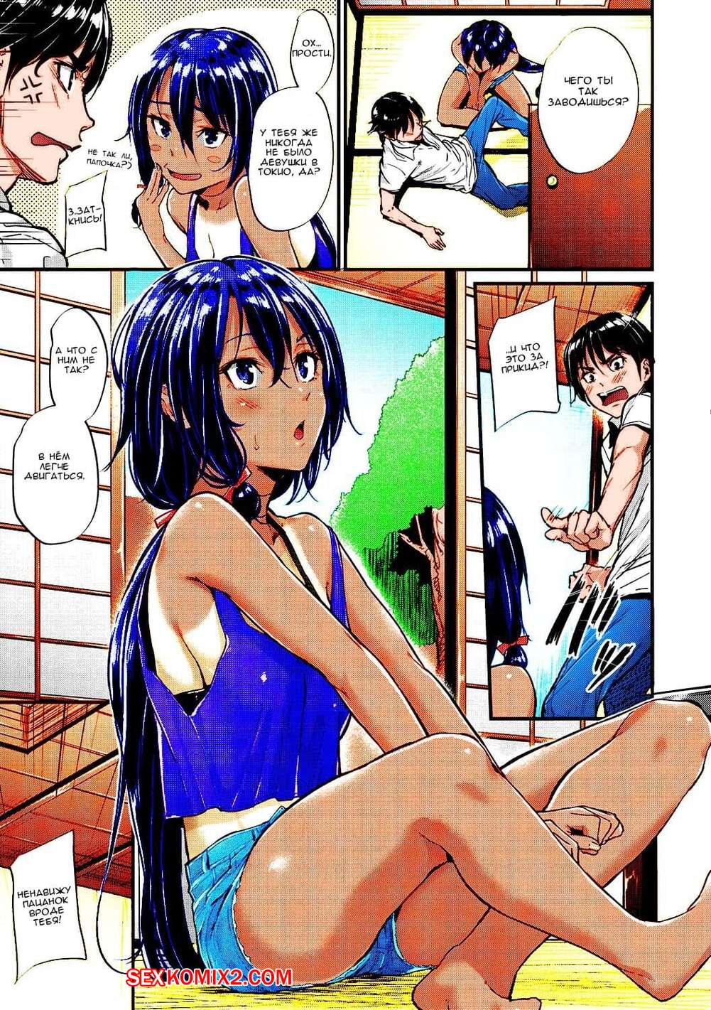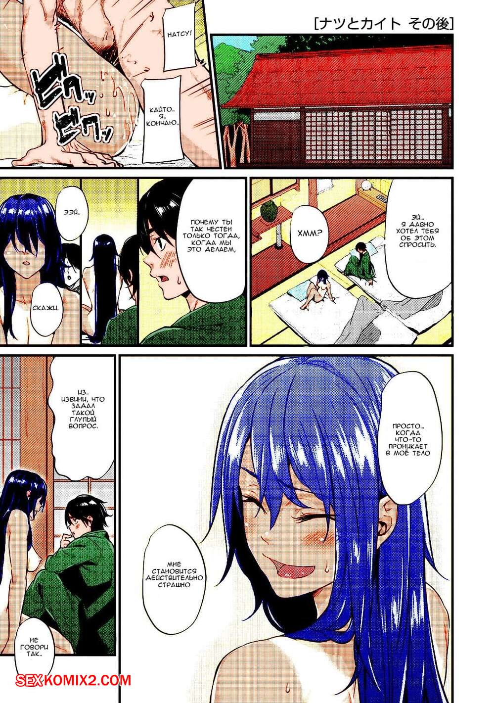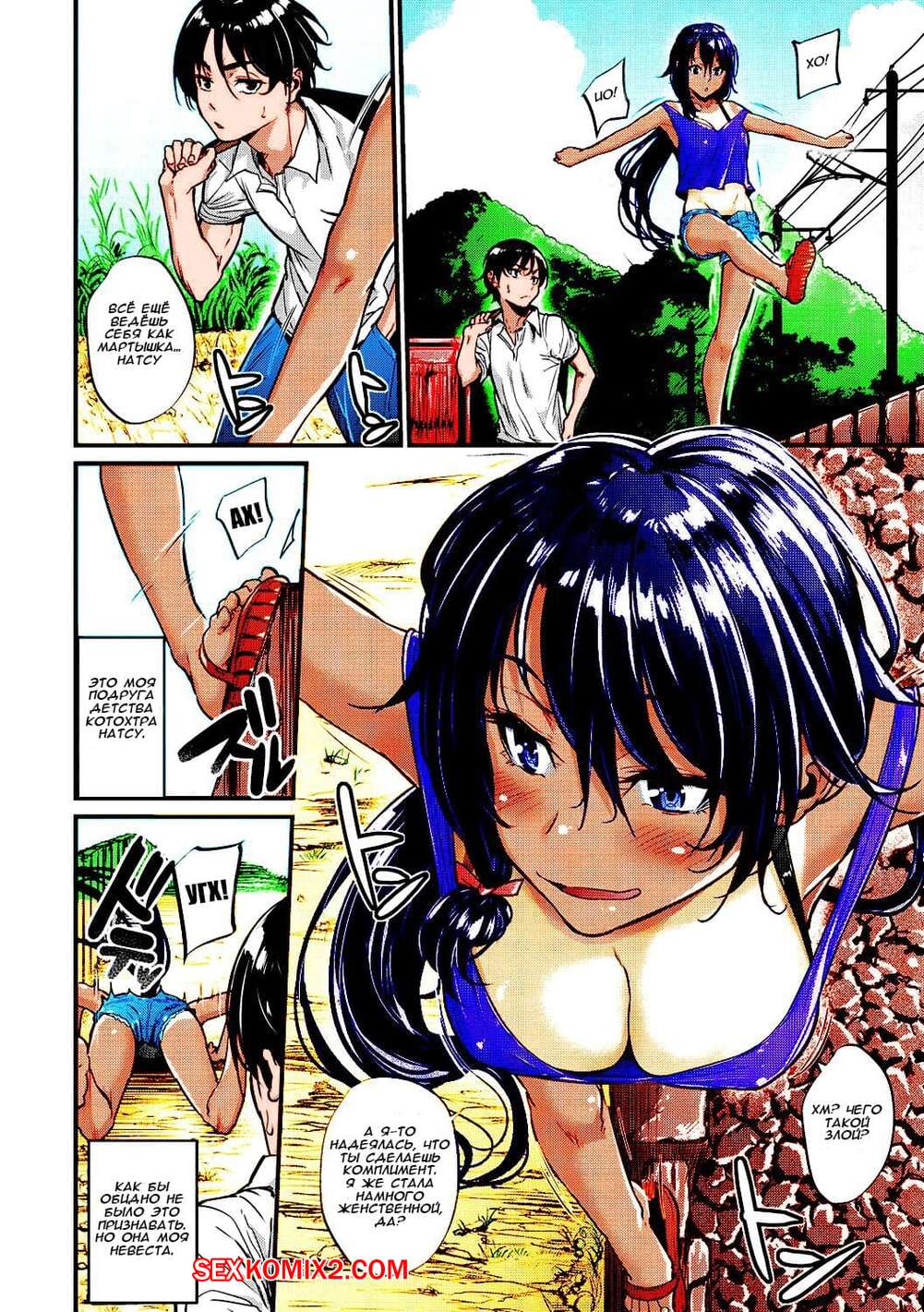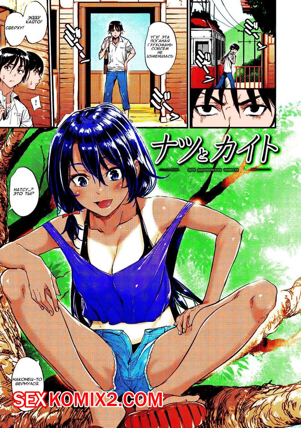 Порно комикс Моя деревенская невеста. Цветная версия. natsu to kaito Горячая сисястая брюнетка была очень возбуждена и решила повеселиться со своим дружком. Она разделась перед ним и стала сосать его большой хуй, после чего дала ему себя выебать и кончить в нее.
