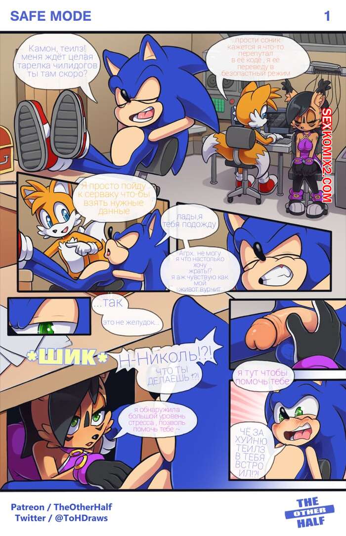 Порно комикс Соник. Безопастный режим. Safe Mode Горячие сисястые красотки просто без ума от большого хуя своего дружка Соника. Они раздеваются перед ним и сосут его большой хуй, после чего дают ему себя хорошенько выебать, получая его сперму.