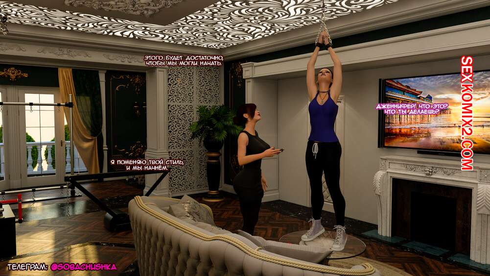 Порно комикс Тренировочные дни. Training Days Сисястая милфа брюнетка решила провести тренировку для молодой девушки. Она раздела ее и стала ласкать ее дырочки, после чего дала ей отсосать свой большой хуй и хорошенько ее выебала.