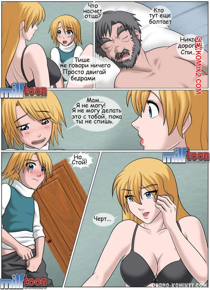 Порно комикс Секс с спящей мамой. Nete iru mama no sekkusu. Sleeper. MILFToon Молодой парнишка застал свою горячую мамку спящей и решил этим воспользоваться. Он раздел красотку и снял с нее трусики, после чего хорошенько выебал ее своим большим хуем.