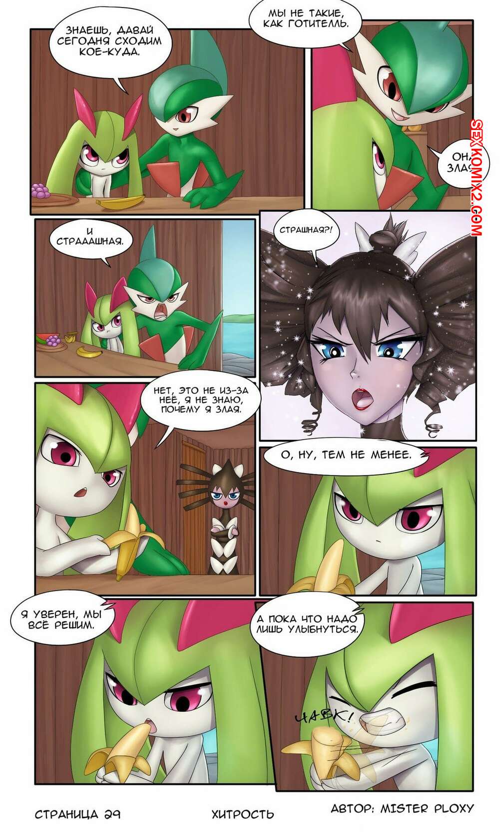 Порно комикс Покемон. Хитрость. Часть 1. Deception Горячая сисястая красотка покемон была очень возбуждена и решила повеселиться со своим дружком с большим хуем. Она стала ласкать его хуй и отсасывать у него, после чего дала ему себя выебать и хорошенько кончить.