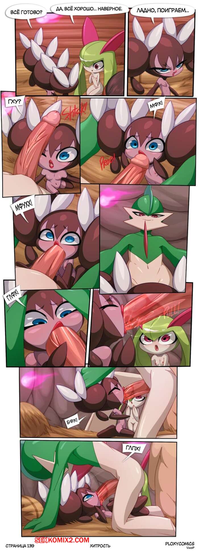 Порно комикс Покемон. Хитрость. Часть 6. Deception Горячая сисястая красотка покемон продолжает веселиться со своим дружком. Она раздевается перед ним и сосет его большой хуй, после чего дает ему себя хорошенько выебать.