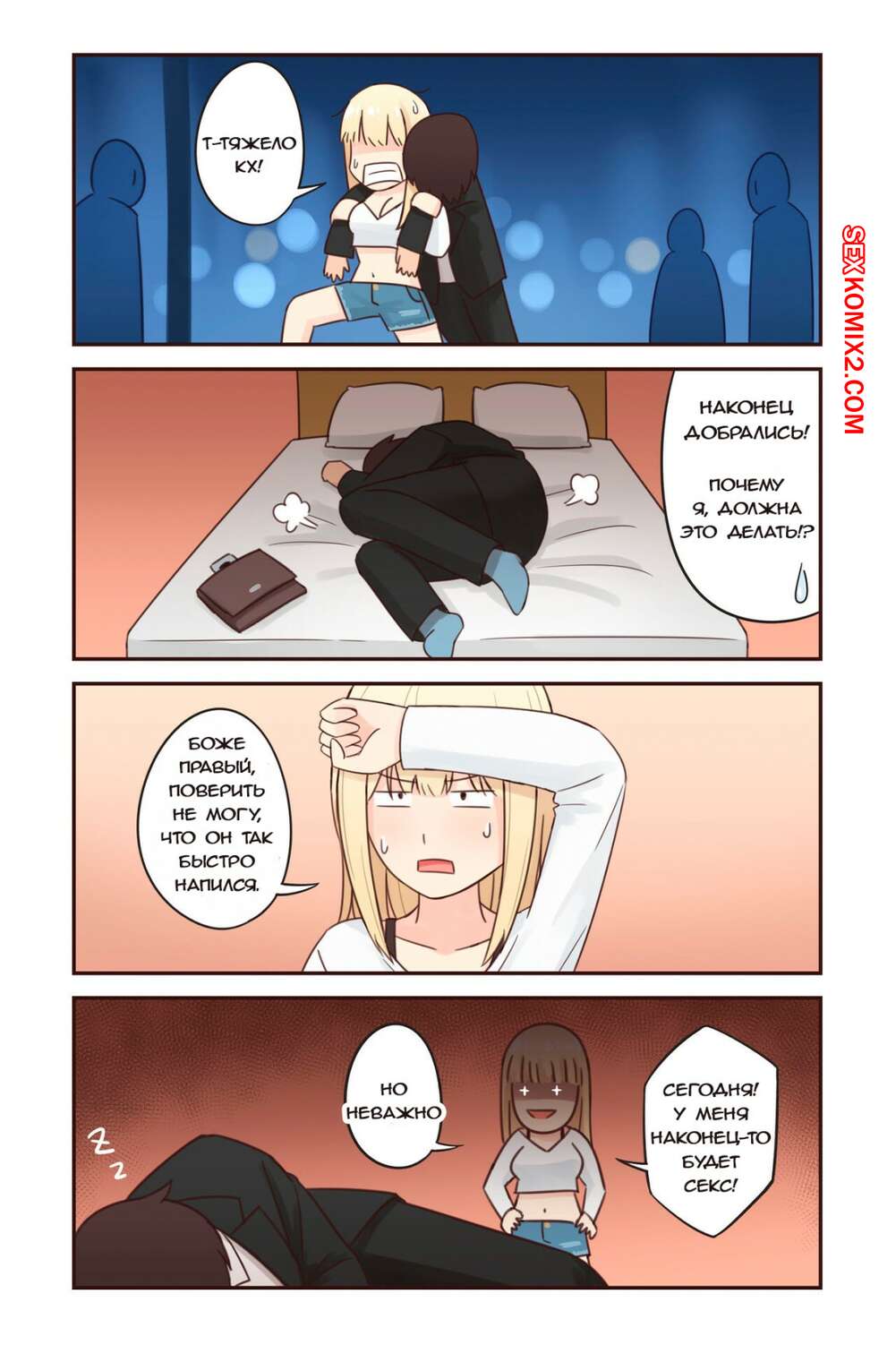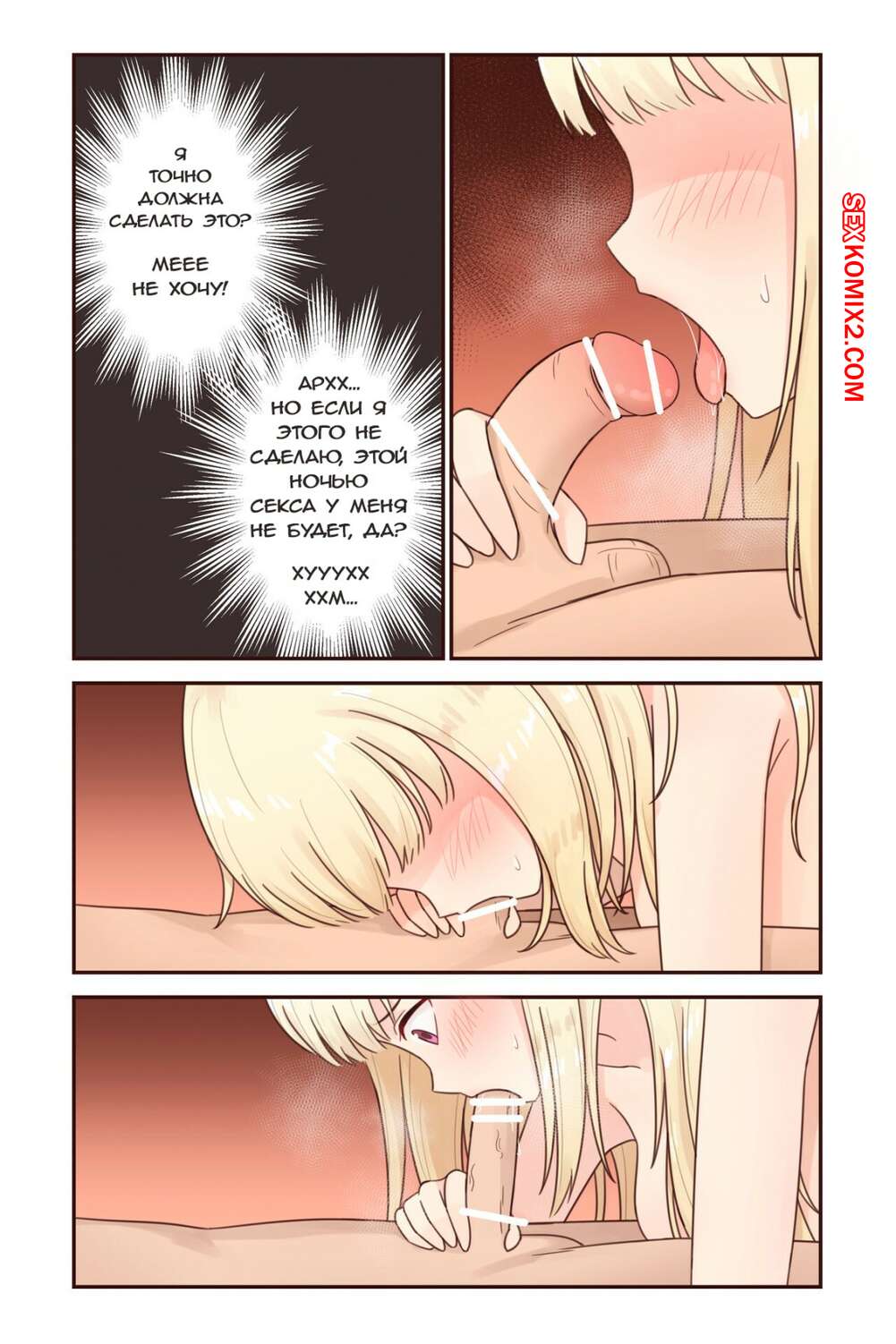 Порно комикс Я превратился в девушку, но никто не трахает меня. Часть 3 Парень недавно превратился в девушку и хочет, чтобы его уже ктонибудь трахнул. Он отправился на прогулку со своим другом, а когда друг уснул дома, девушка раздела друга и стала сосать его хуй.