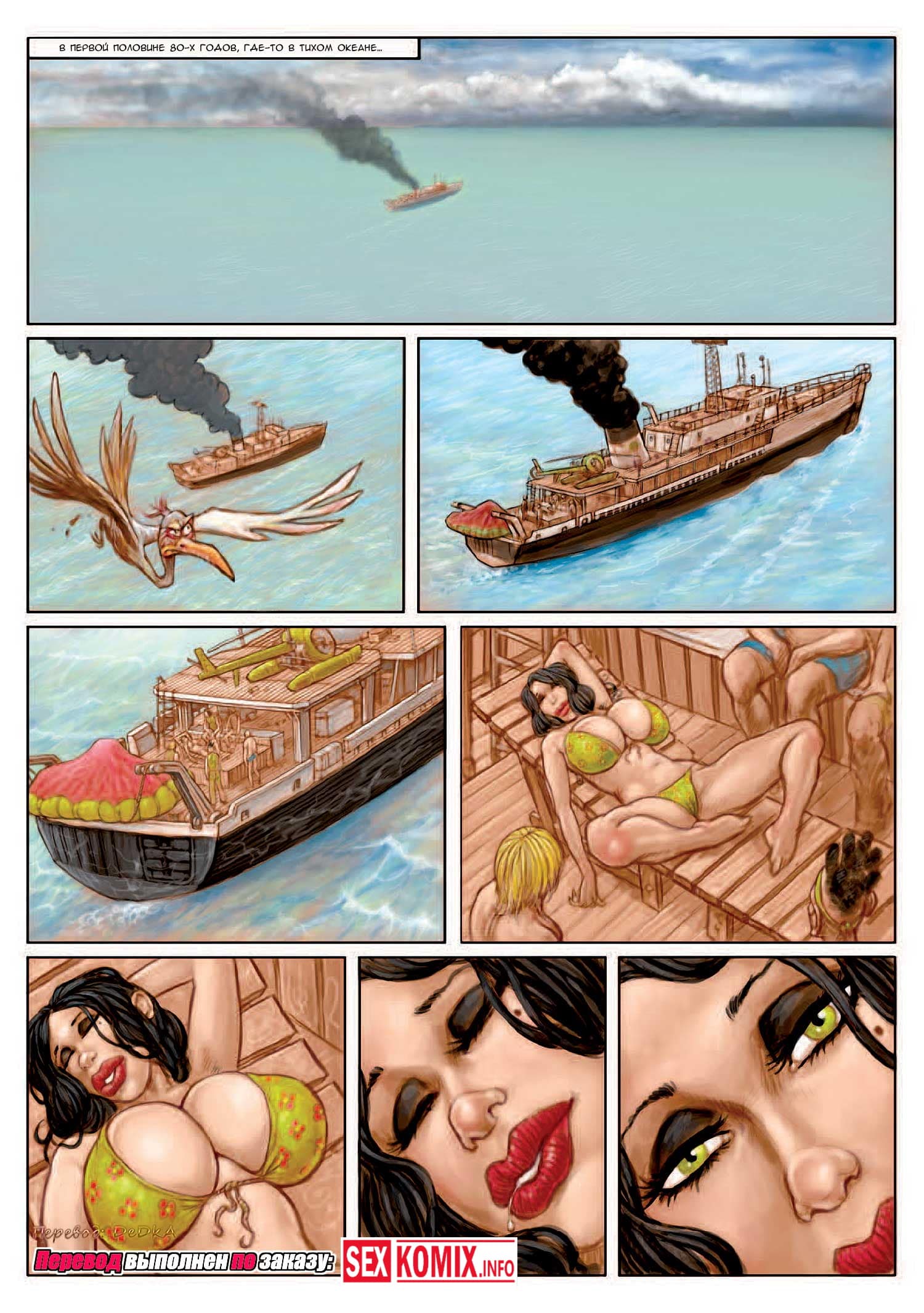 Порно комикс Таинственный остров. Часть 1. В этом комиксе вы прочитаете о приключениях сексуальной красотки - Мелони Свит, которая отправилась на остров в поисках сокровищ вместе с командой озабоченных мужиков. И во время путешествия они постоянно её трахают. А когда команда находит остров, они обнаруживают на нем племя аборигенов, которые тоже не прочь трахнуть брюнетку.