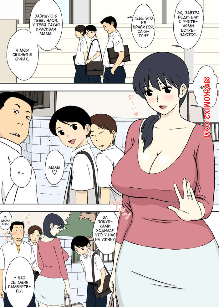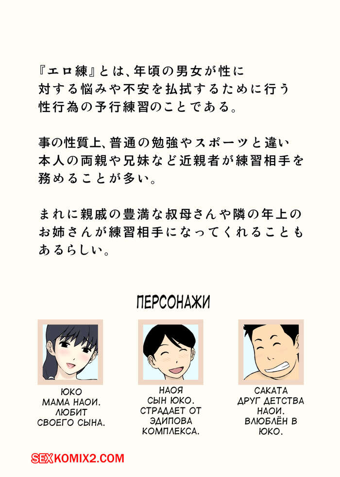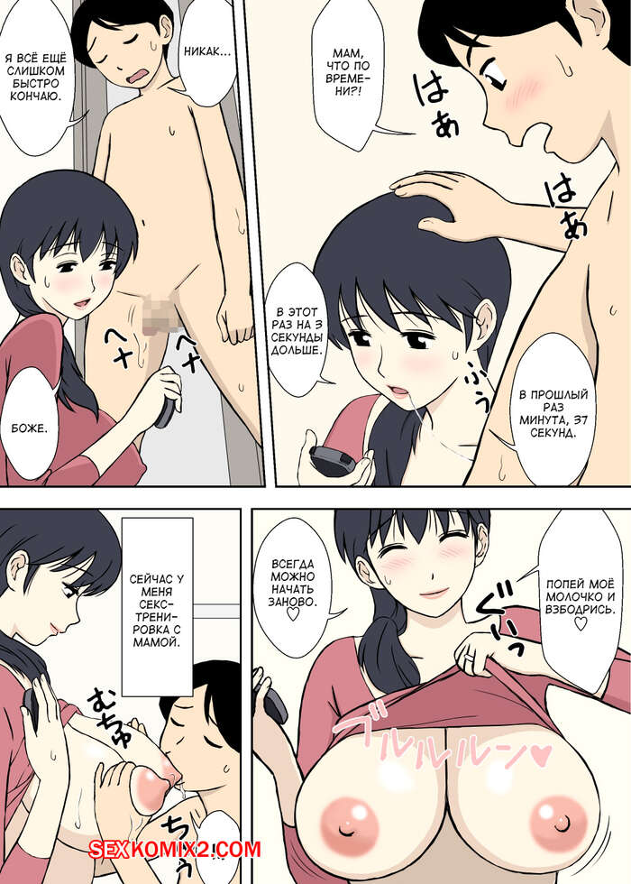 Порно комикс Секстренировка с мамой. Mama to Eroren. Urakan Сисястая милфа брюнетка была очень возбуждена и решила научить молодых парней сексу. Красотка разделась перед ними и стала у них отсасывать, после чего дала им себя выебать.