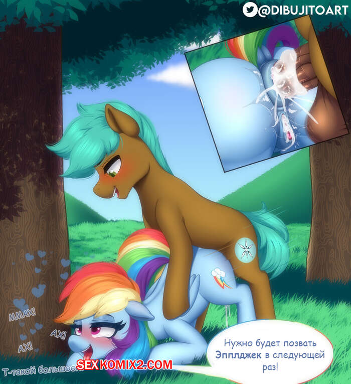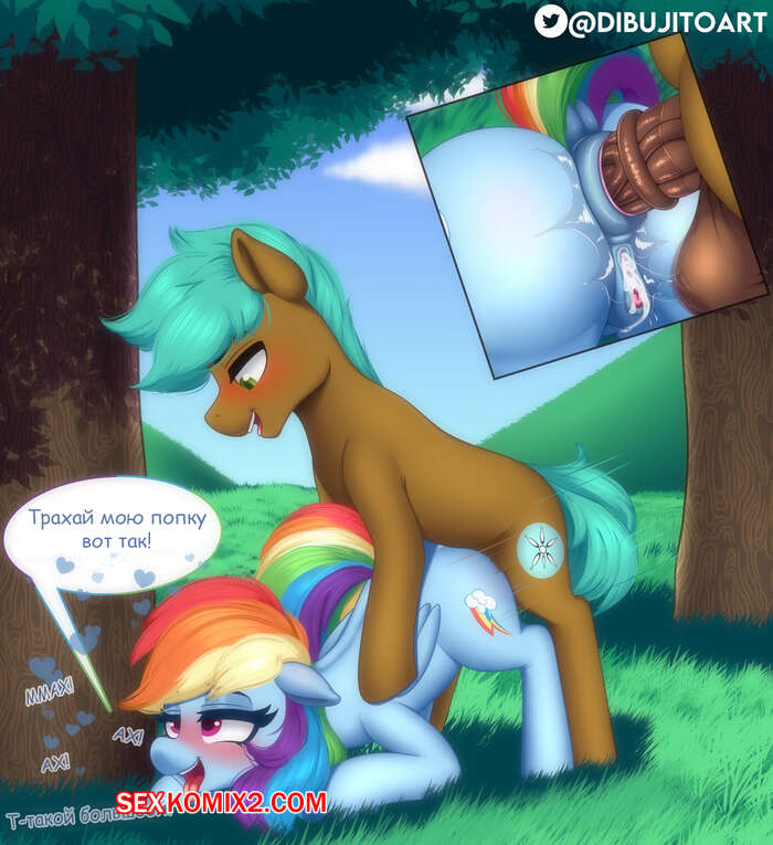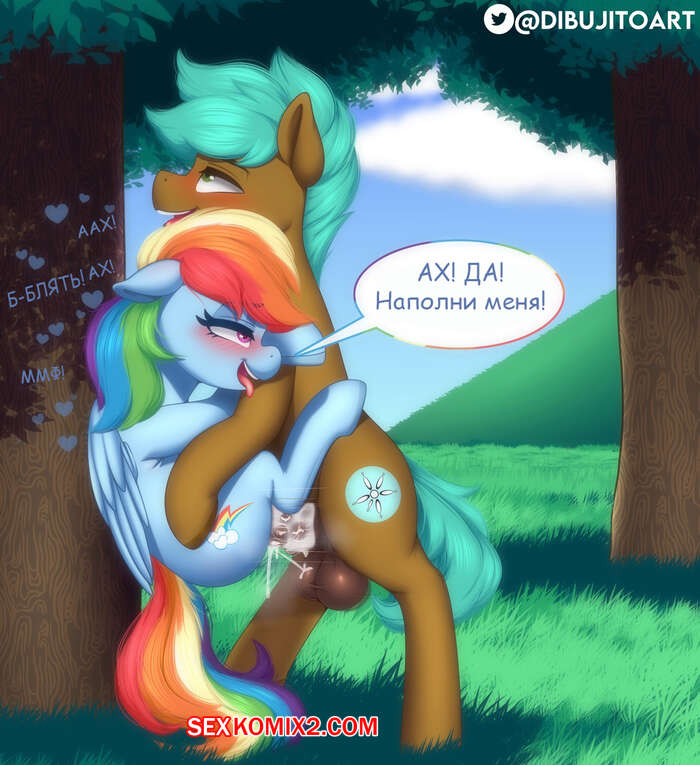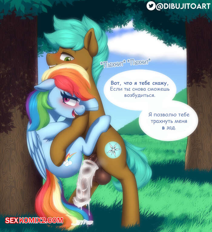 Порно комикс My Little Pony. Рейнбоу Дэш. Dibujitoart Горячая красотка пони встретилась со своим дружком, чтобы повеселиться. Она разделась перед парнем и дала ему себя хорошенько выебать в пизду и задницу, заполняя ее дырочки спермой.