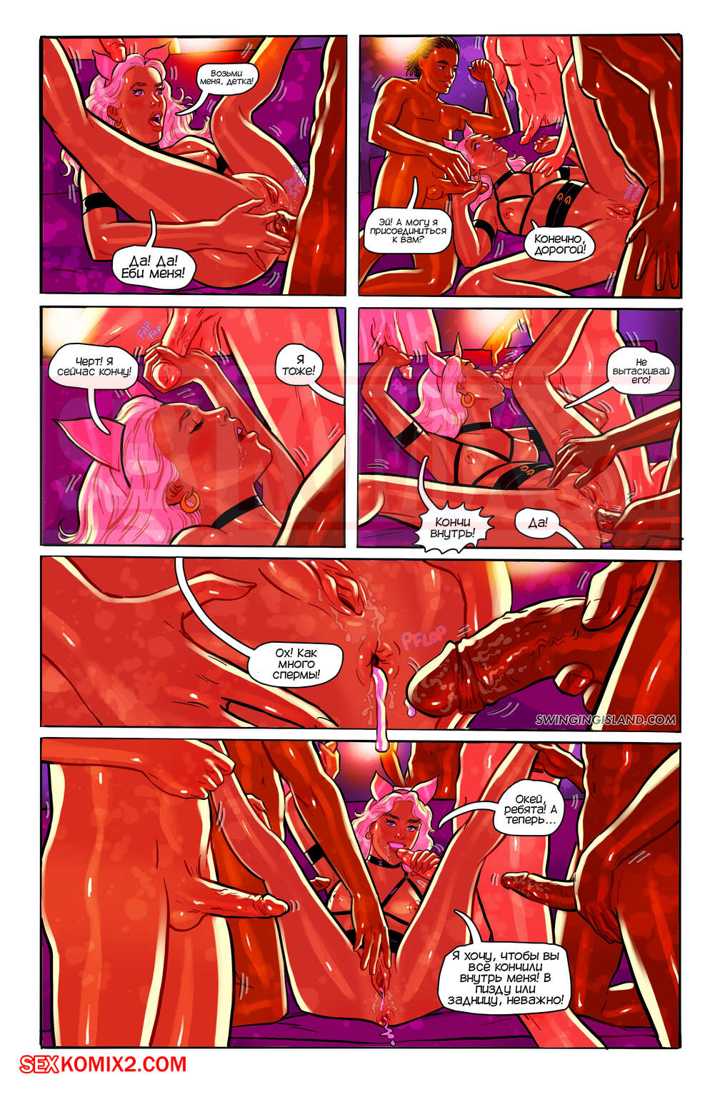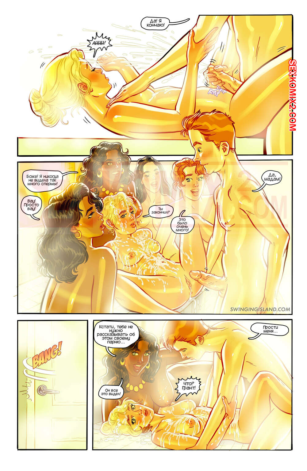 Порно комикс Волнующий остров. Земля удовольствий. Молодожены приехали в особняк, где собираются любители оргий. Они там встретили много людей и занялись с ними беспорядочным сексом.