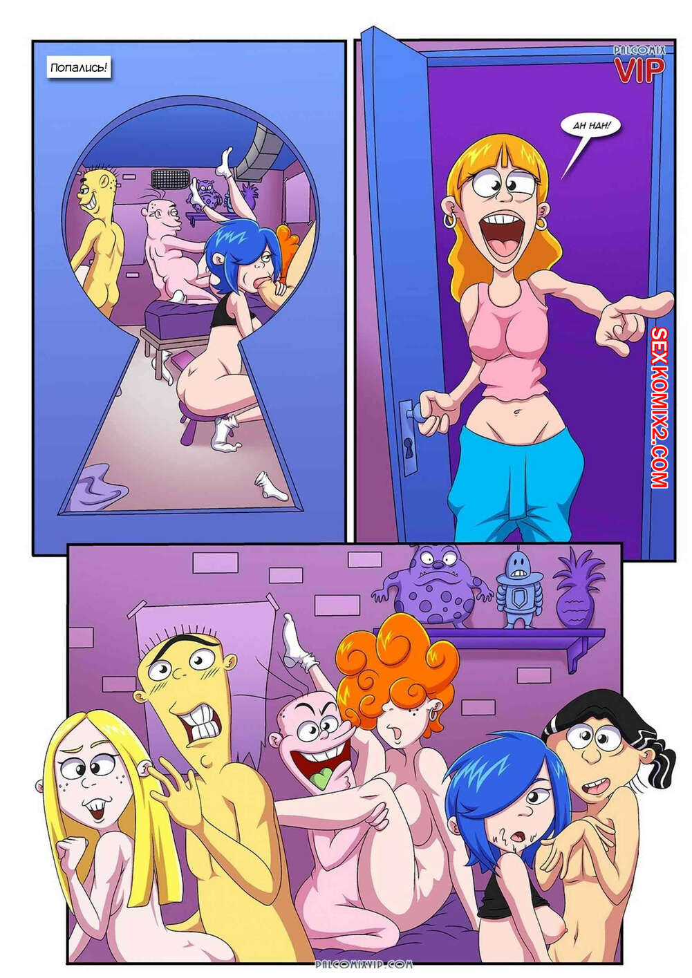 Порно комикс Шпион который меня подставил. The Spy That Ed Me. Palcomix Горячая блондинка следила за своим братом и его дружками, которые трахали своих подруг. Парни решили проучить девушку за такое, поэтому они хорошенько выебали ее во все дырочки.