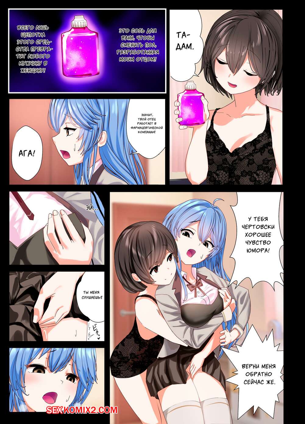 Порно комикс История о том как я, искупавшись в ванне, обратился в прекрасную девушку. Erutoria Парень принимал ванну и неожиданно превратился в девушку. Сперва он повеселился со своей подругой, после чего встретился с мужиками с большими хуями, чтобы хорошенько поебаться.