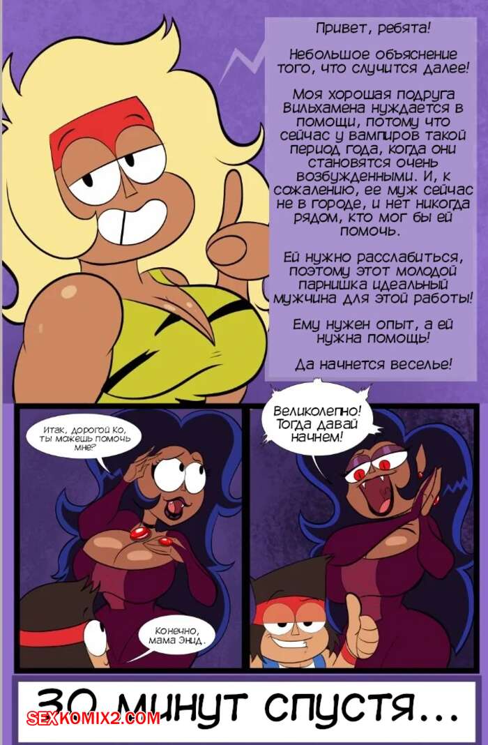 Порно комикс Ночь пира милф. Night of the MILF Pire. Ameizing Lewds Сисястая милфа вампирша была очень возбуждена, поэтому встретилась с молодым парнем, чтобы повеселиться. Красотка стала сосать большой хуй парня, после чего дала ему себя выебать.
