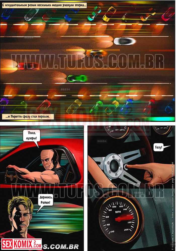 Порно комикс Форсаж. Посмотрите секс-комикс о персонажах фильма о гонках. После следующей гонки они возвращаются домой и занимаются сексом.