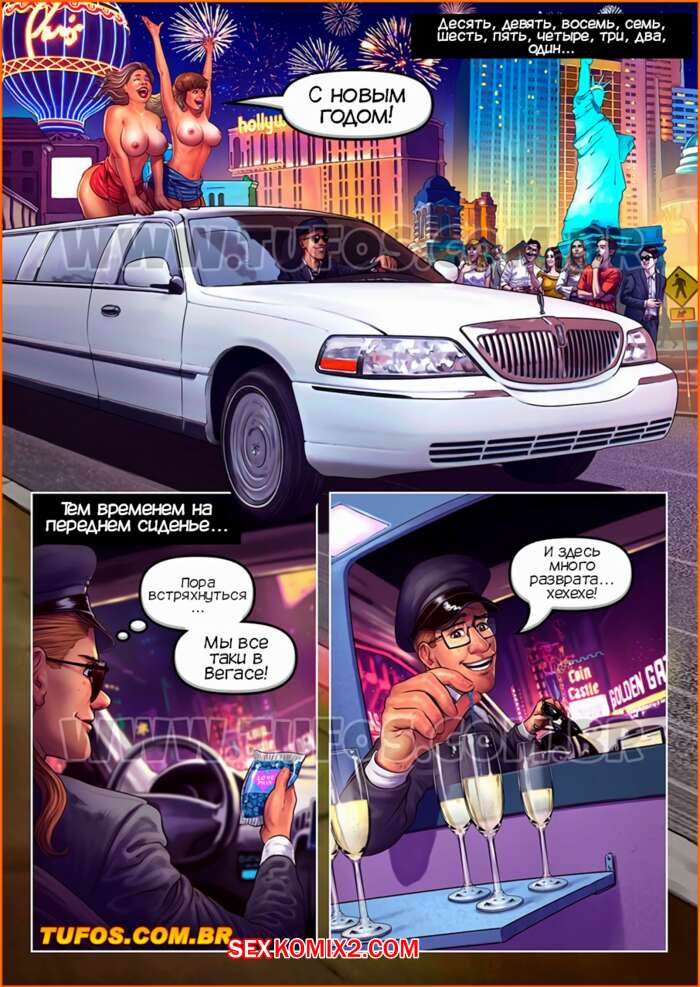 Порно комикс Семейка из трущоб. Часть 16. Победа в лотереи. Tufos Семейка из трущоб разбогатела, выиграв в лотерее. Они отправились праздновать новый год в ЛасВегас, где их водитель подсыпал им в шампанское афродизиак, после чего в машине произошла страстная оргия.