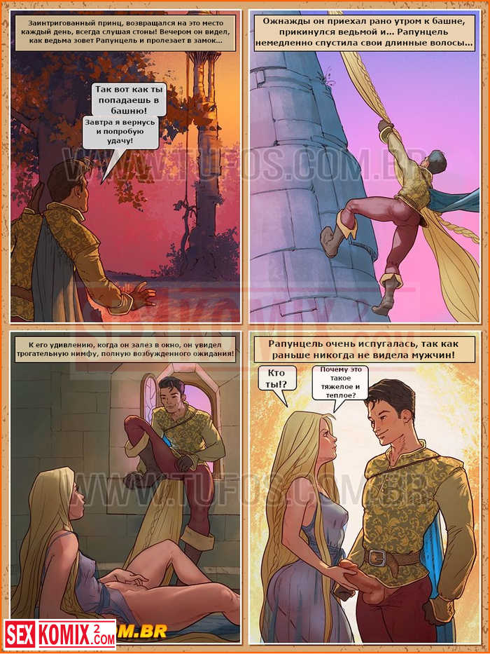 Порно комикс Рапунцель. Девушка очень долго ждала своего принца. Который её спасет и вот он пришёл и трахнул эту горячую блондинку