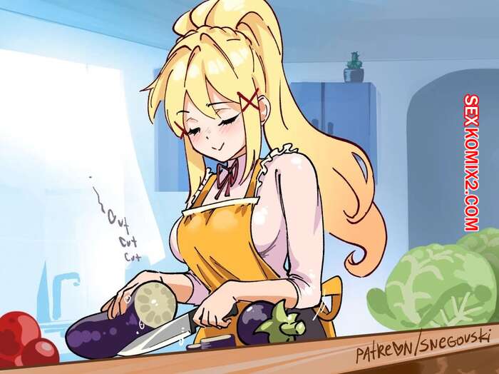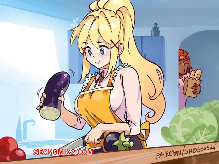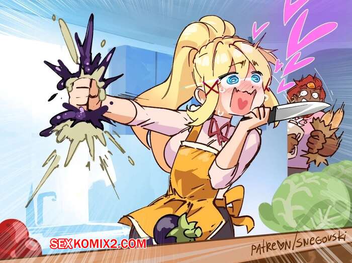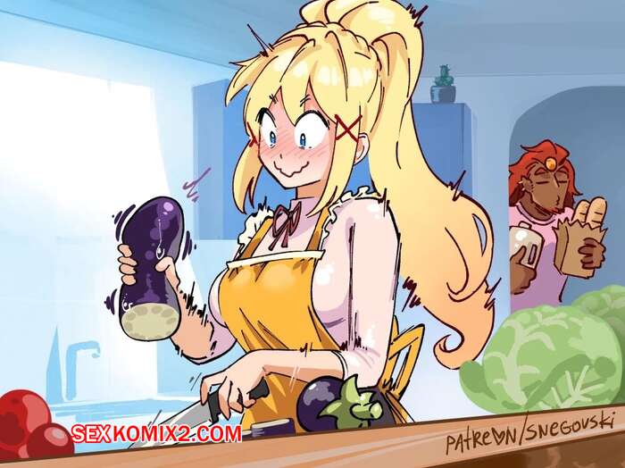 Порно комикс Даркнесс. Истребительница овощей. Блондинка с сочной попкой готовит салат, она решила немного отдохнуть и развлекла себя фалосо-образными овощами.