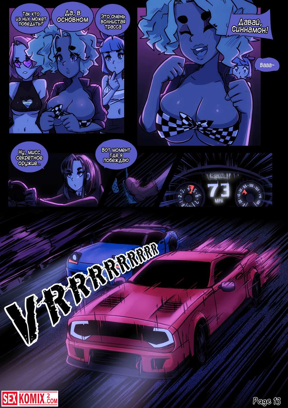 Порно комикс Предел мечтаний. Сексуальные девушки устроили ночные гонки по городским улицам. А после соревнований занялись жарким сексом.