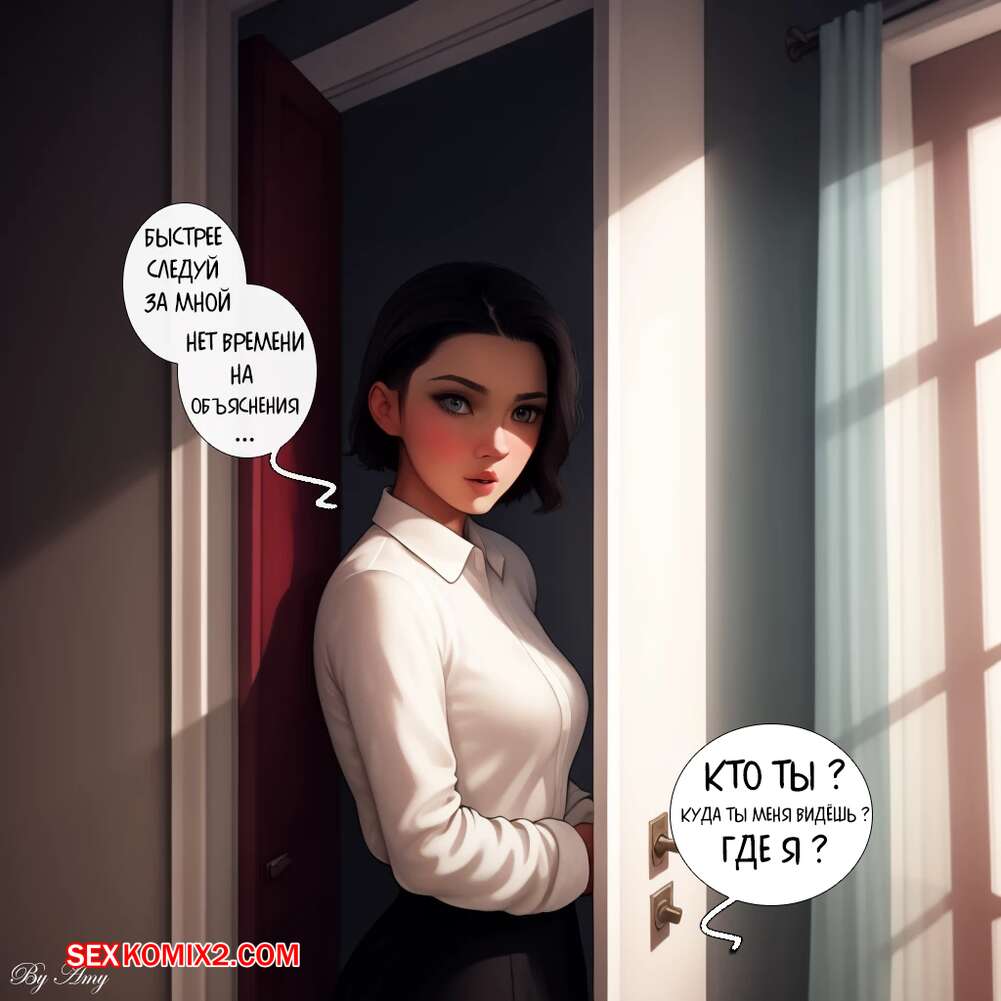 Порно комикс В грёзах. Amy Горячей сисястой брюнетке приснился странный сон. В нем она встретила сексуальную брюнетку, которая звала ее к себе на кровать, чтобы хорошенько поебаться.