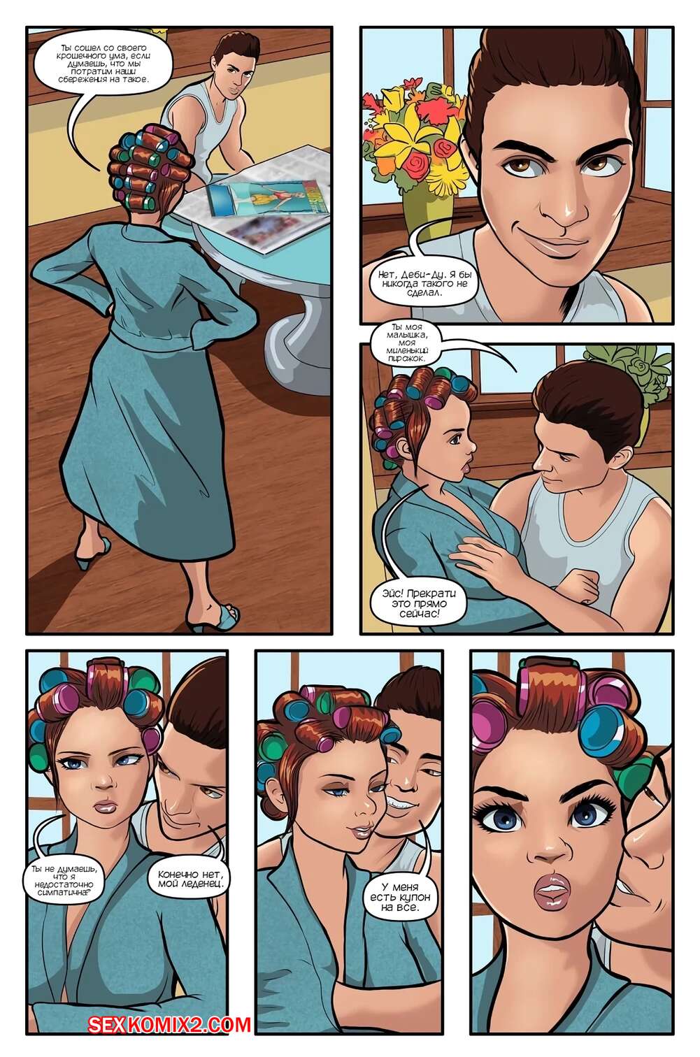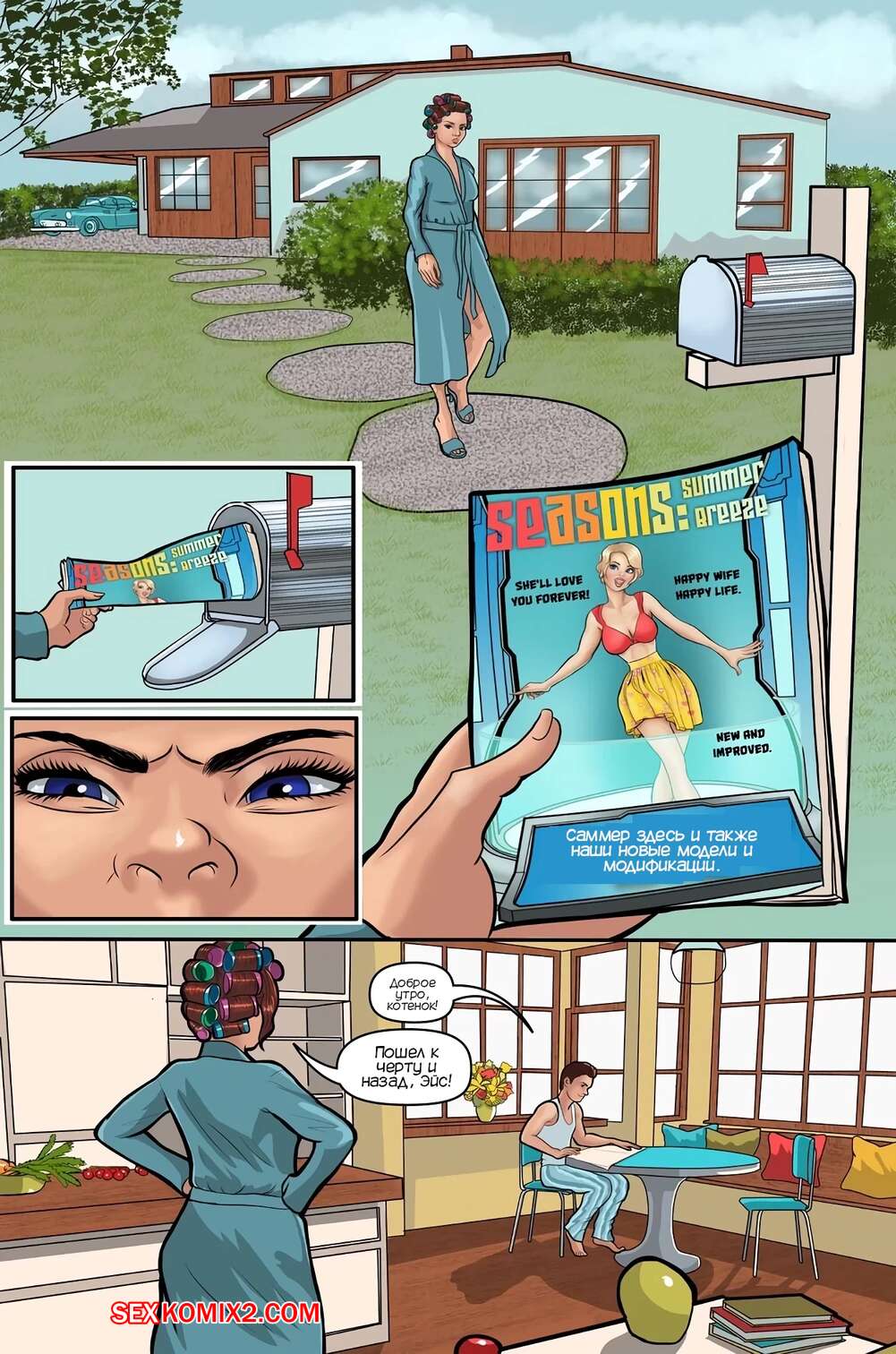 Порно комикс Времена года. Летний бриз. Часть 1. Seasons Summer Breeze. mindcontrolcomics Парень отдал хорошие деньги, чтобы изменить внешность своей жены. Теперь она стала сексуальной блондинкой с большими сиськами, которая постоянно желает трахаться, от чего парень просто в шоке.