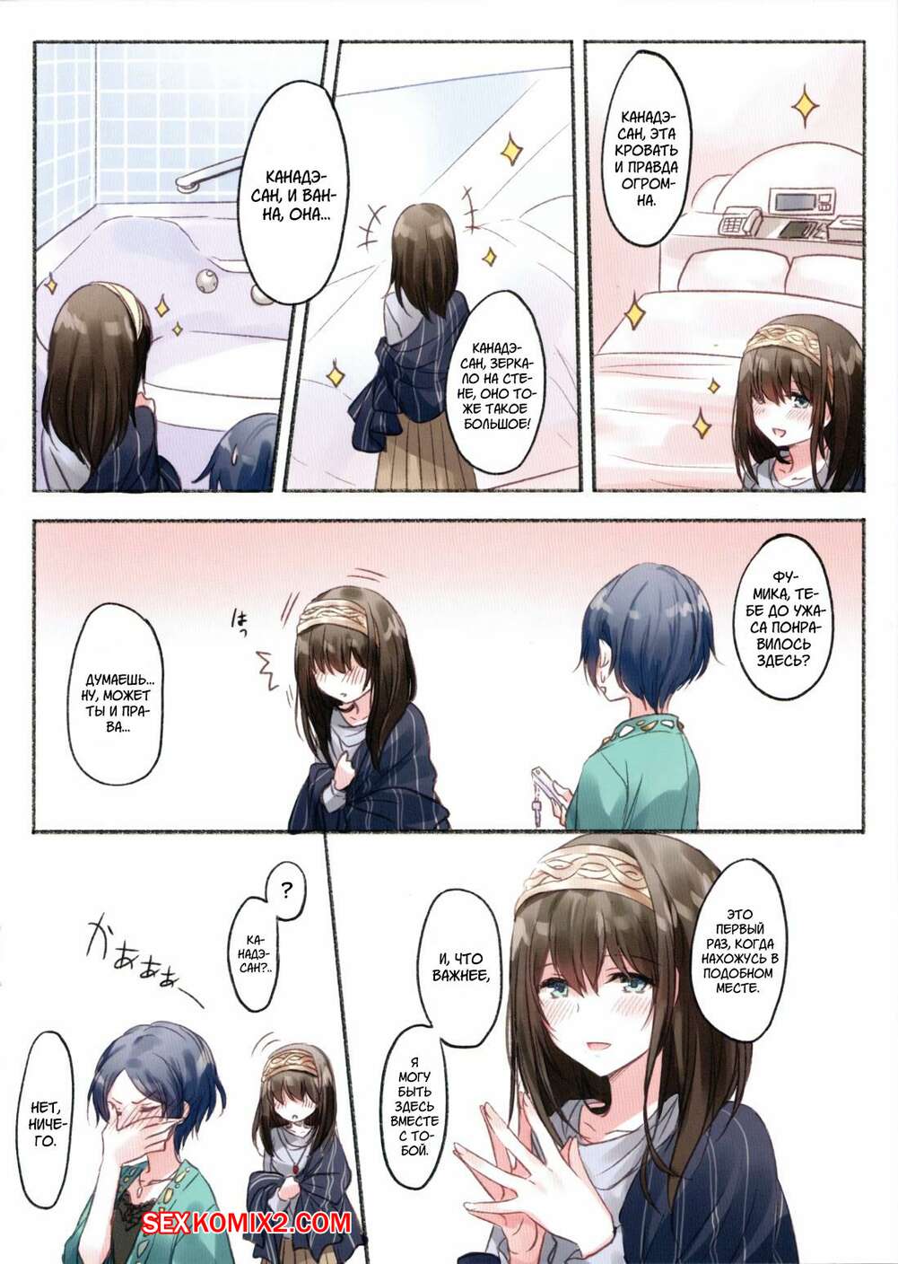 Порно комикс The Idolmaster. Отведи меня в отель любви. Часть 1. Romi Горячие сексуальные брюнетки были очень возбуждены и хотели трахаться. Они разделись и стали ласкать друг дружку, после чего занялись страстной лесбийской еблей.