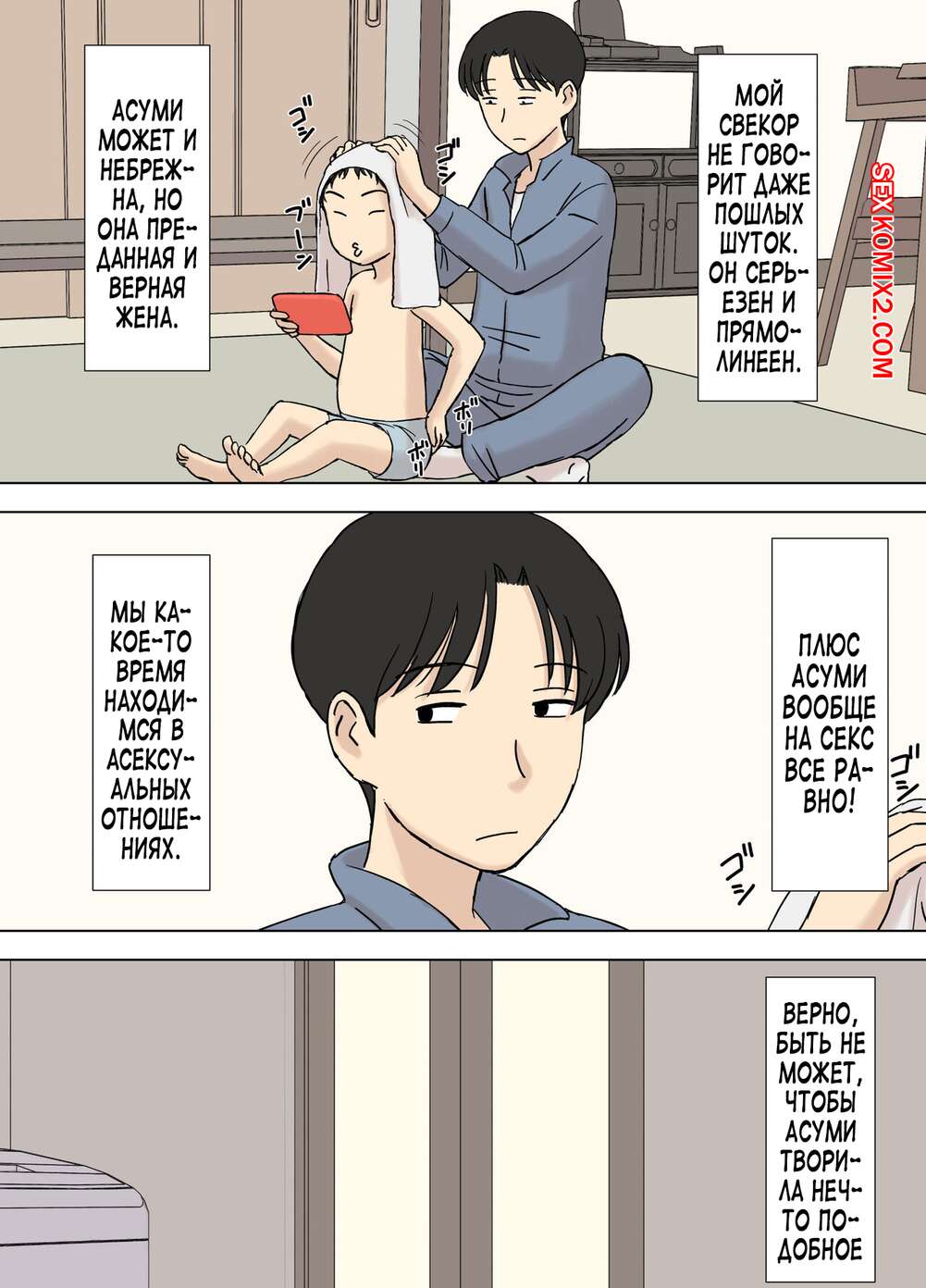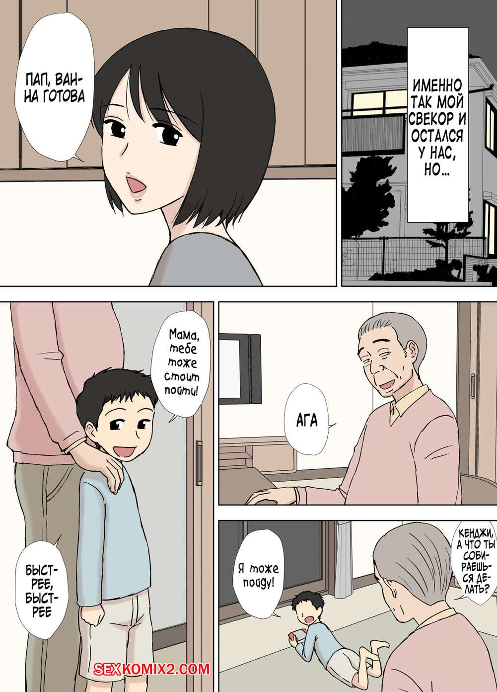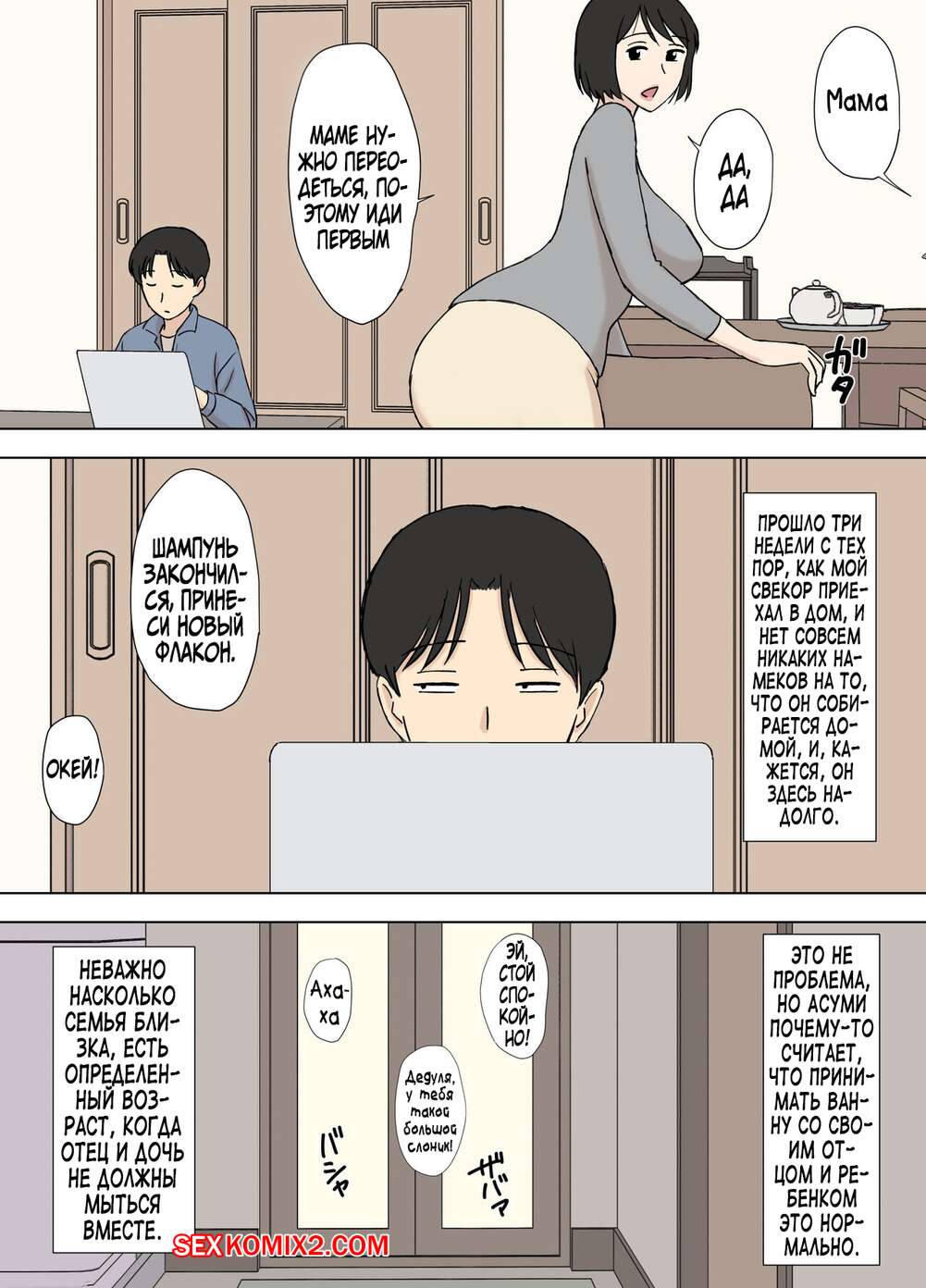 Порно комикс Моя жена все еще купается со своим отцом. Urakan Сисястая милфа брюнетка с детства привыкла купаться со своим отцом. Пока муж был в гостинной, красотка пошла в ванну отцу, где отсосала его большой хуй и дала ему себя выебать.