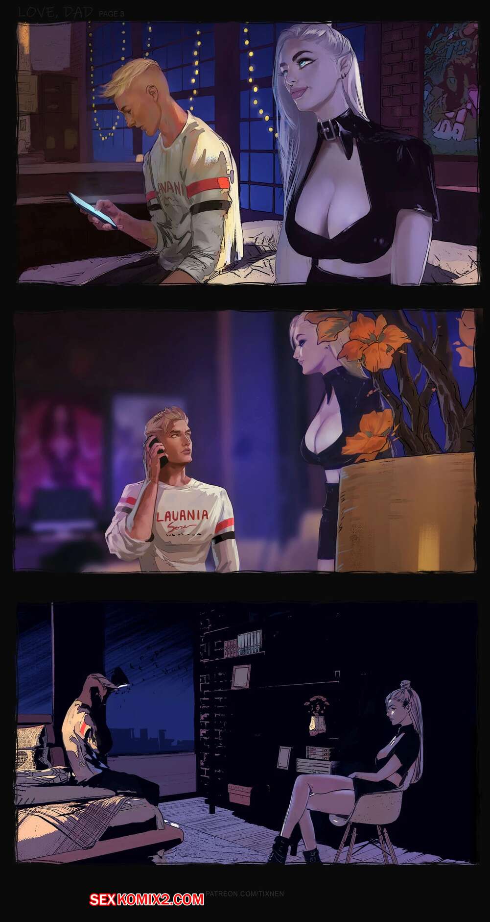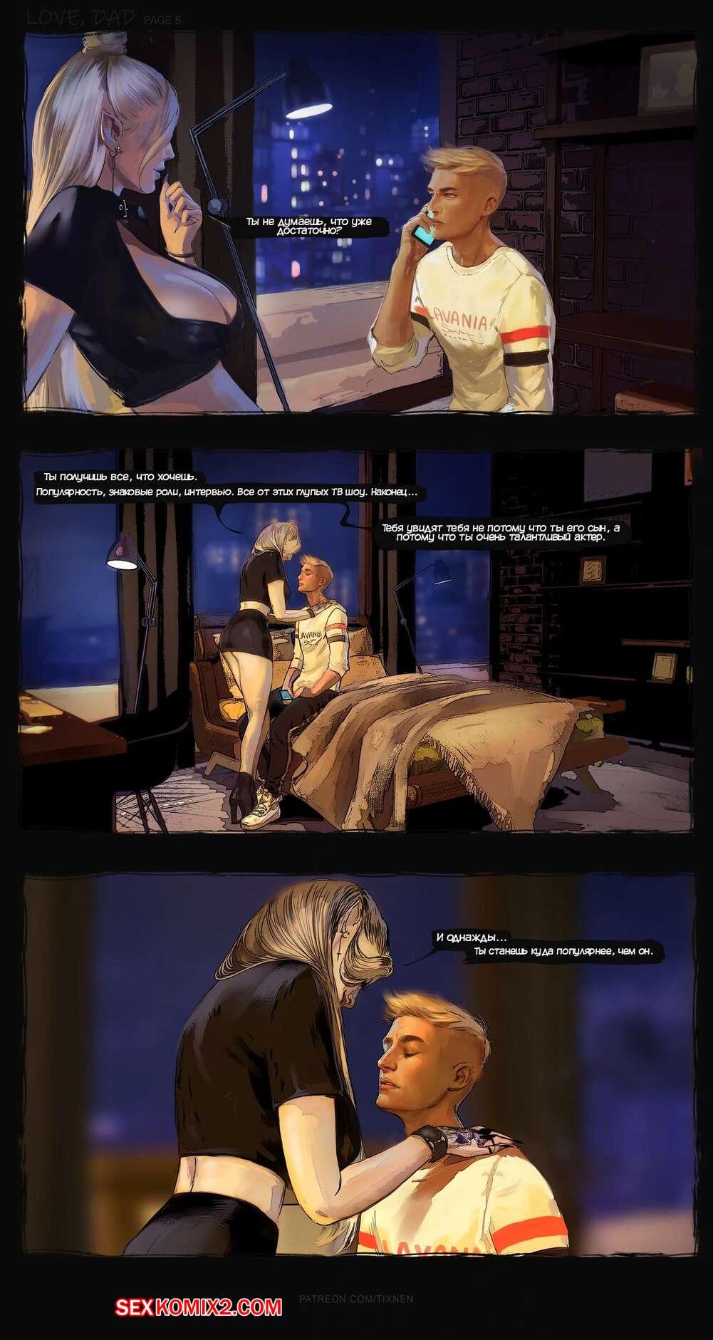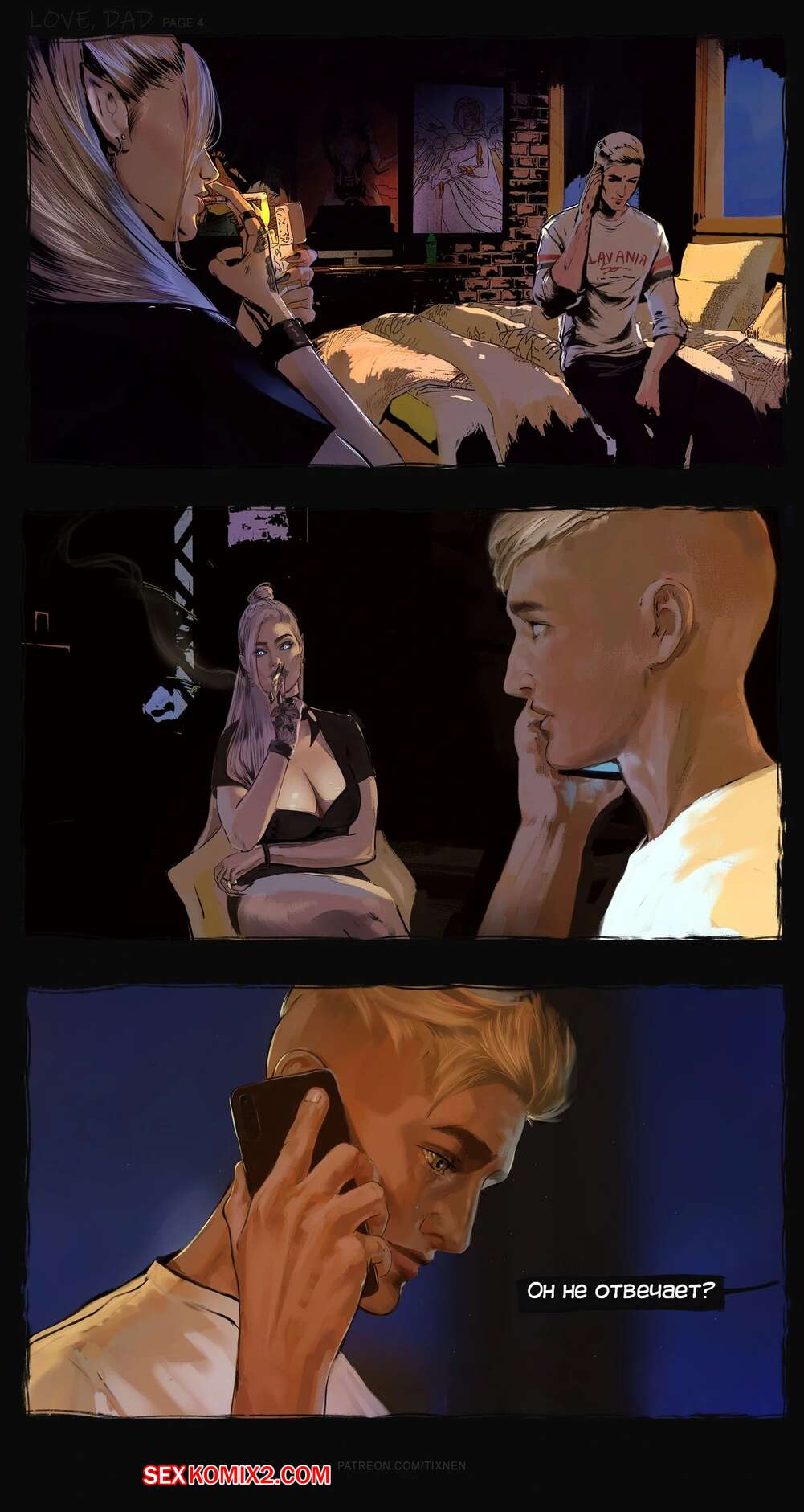 Порно комикс Люблю папу. Love Dad. TIXNEN Молодой парень переживал о своих отношениях с отцом, а сисястая блондинка решила его утешить. Красотка разделась и стала сосать большой хуй парня, после чего дала ему себя выебать.