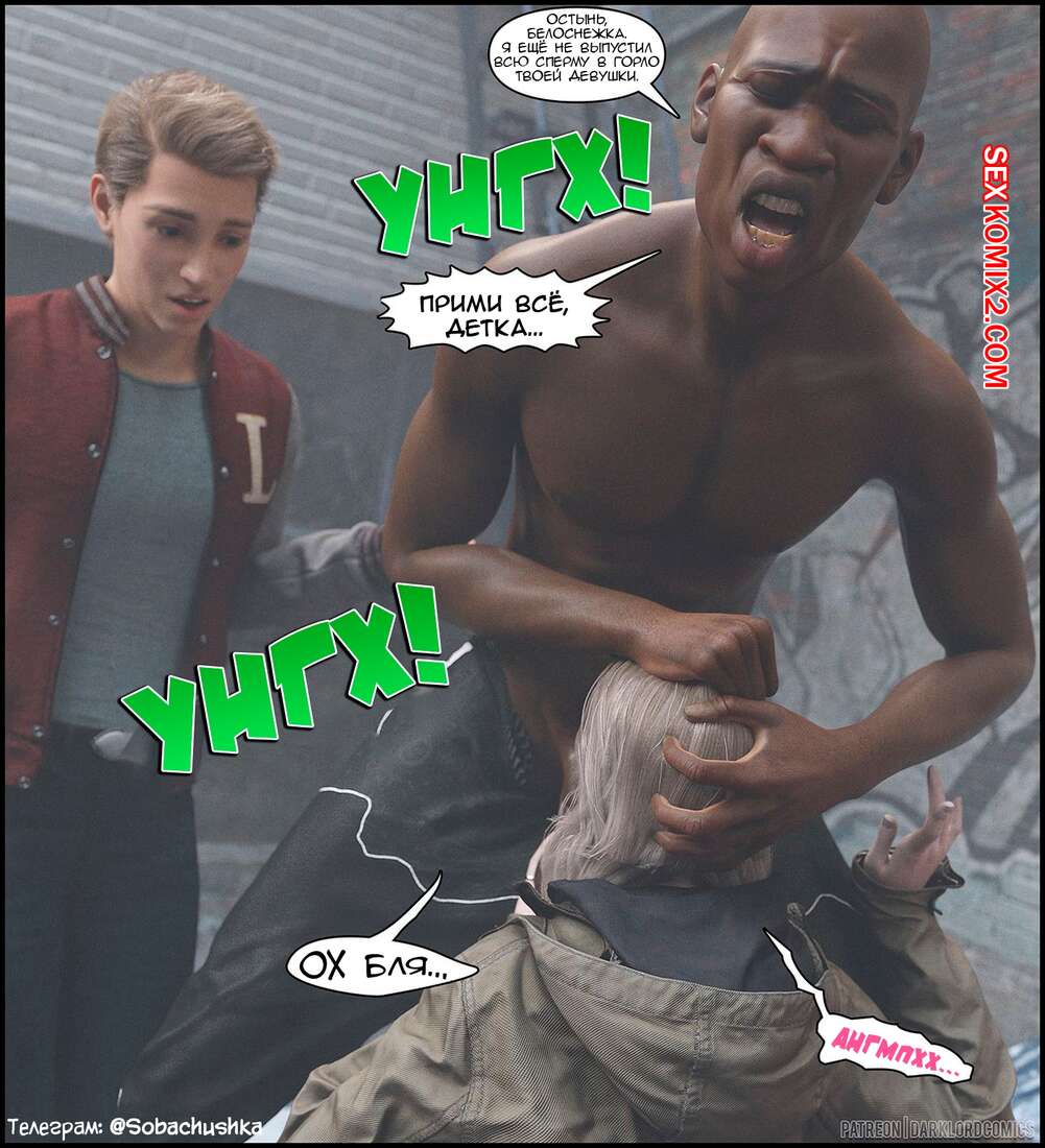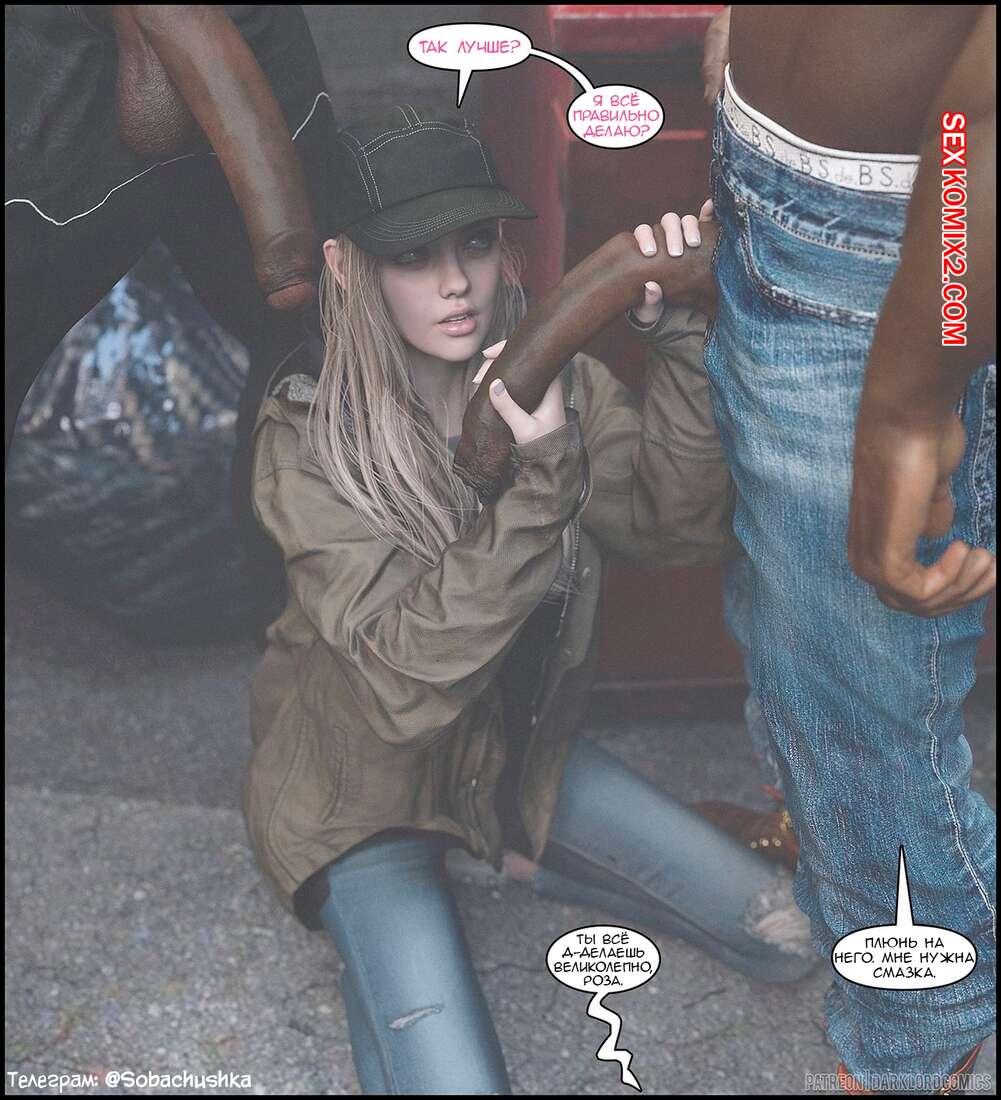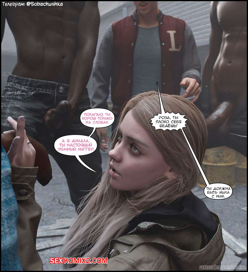 Порно комикс Resident Evil. Роза на районе. Часть 1. Rose In The Hood. Darklord Горячая сисястая блондинка прогуливалась по переулку со своим парнем, где они встретили толпу темнокожих парней. Они решили повеселиться с юной красоткой и выебали ее в ротик на глазах ее парня.