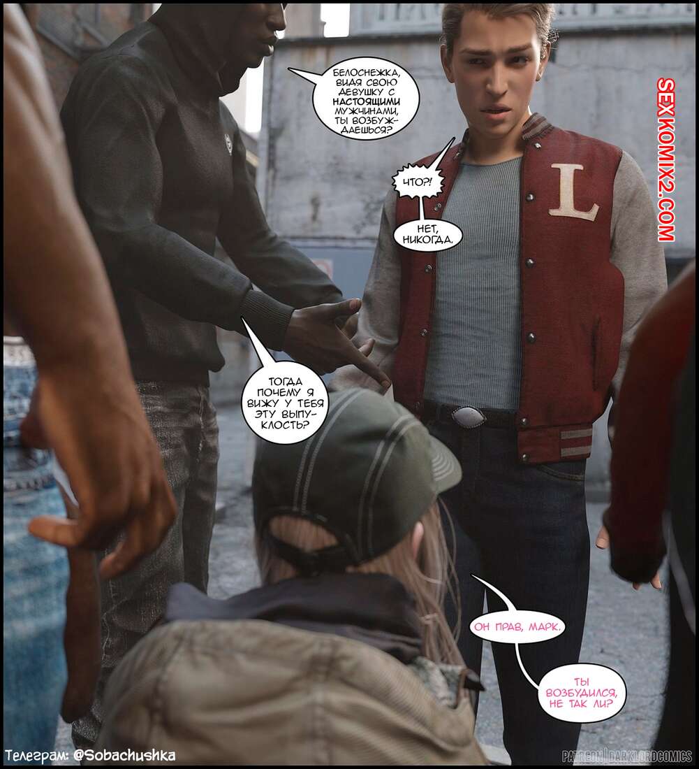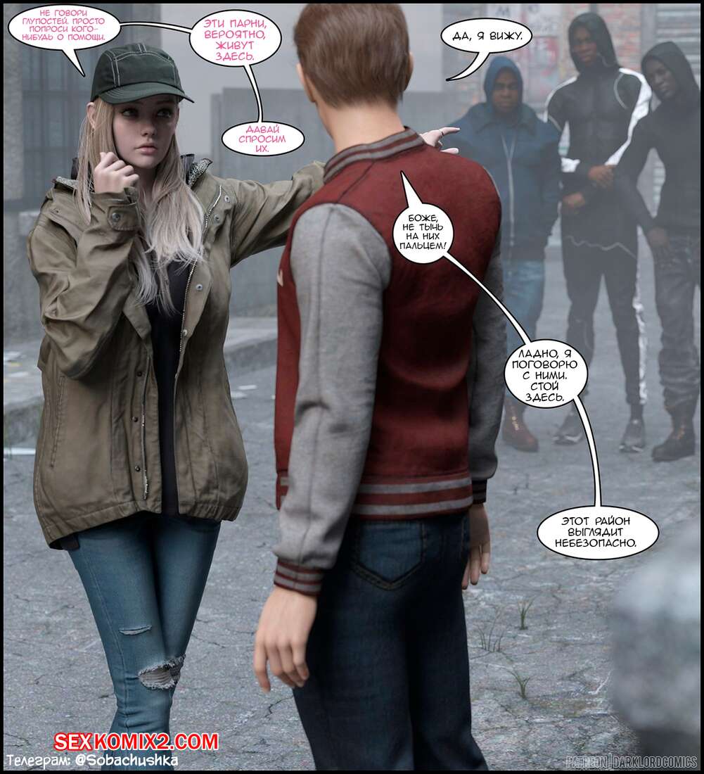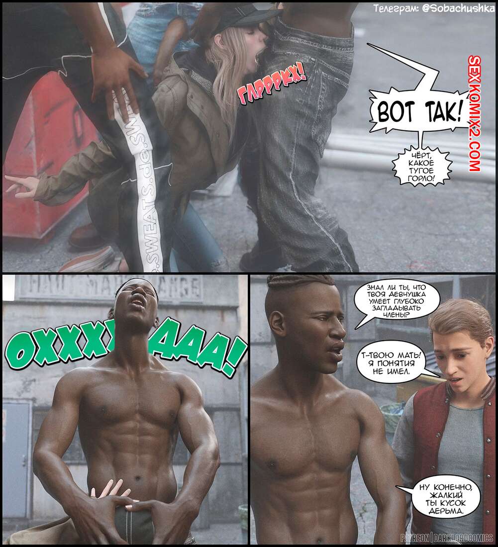 Порно комикс Resident Evil. Роза на районе. Часть 1. Rose In The Hood. Darklord Горячая сисястая блондинка прогуливалась по переулку со своим парнем, где они встретили толпу темнокожих парней. Они решили повеселиться с юной красоткой и выебали ее в ротик на глазах ее парня.